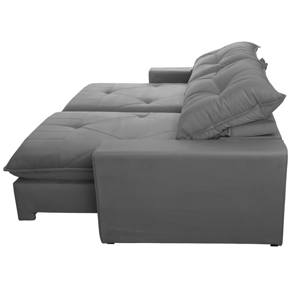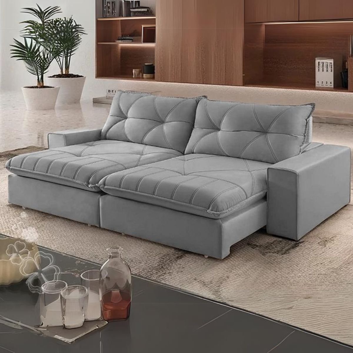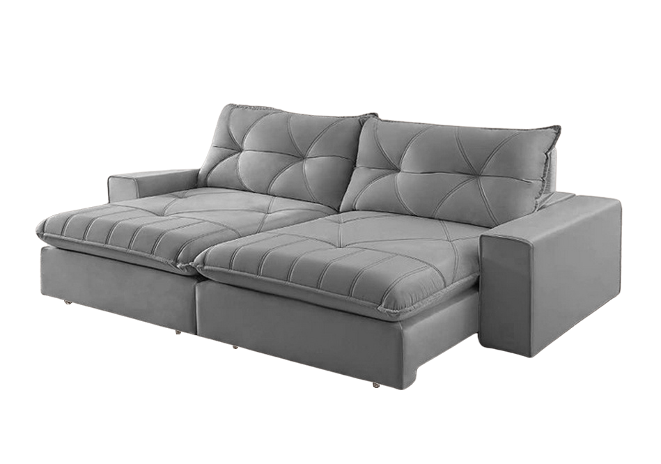 Sofá Retrátil e Reclinável Marfim 2,50 m Veludo Prata – TREVO ESTOFADOS