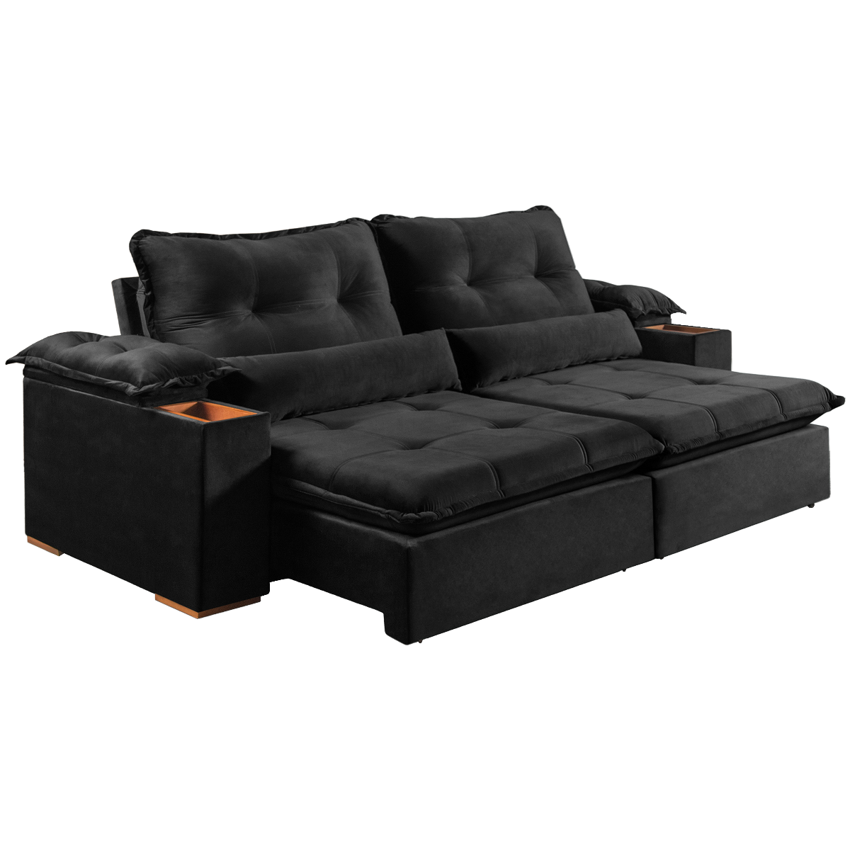 Sofá Retrátil e Reclinável Marrocos 2,50 m Veludo Preto 5040 – VICAM ESTOFADOS