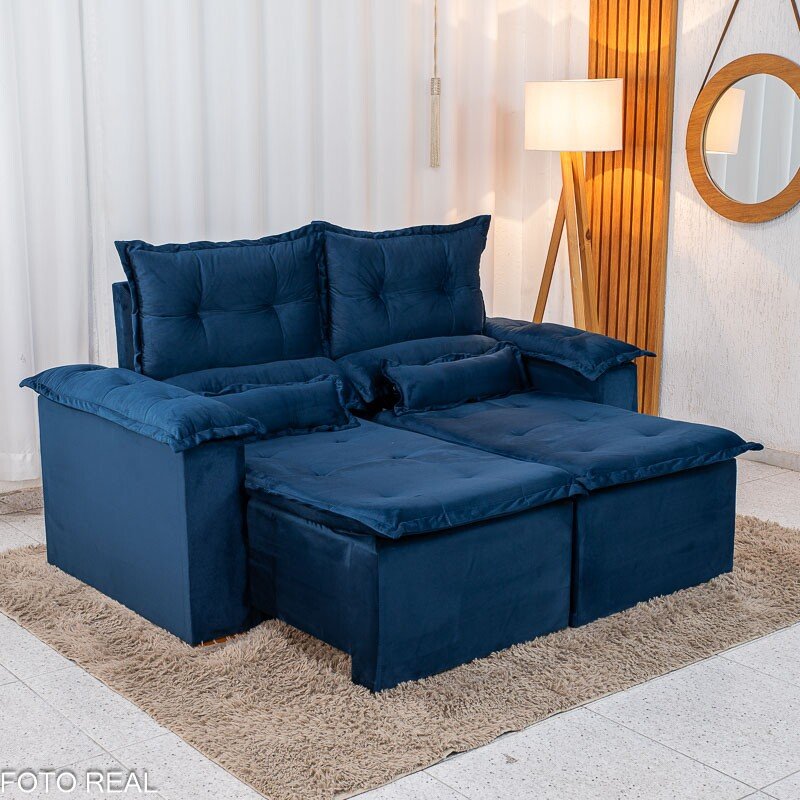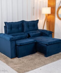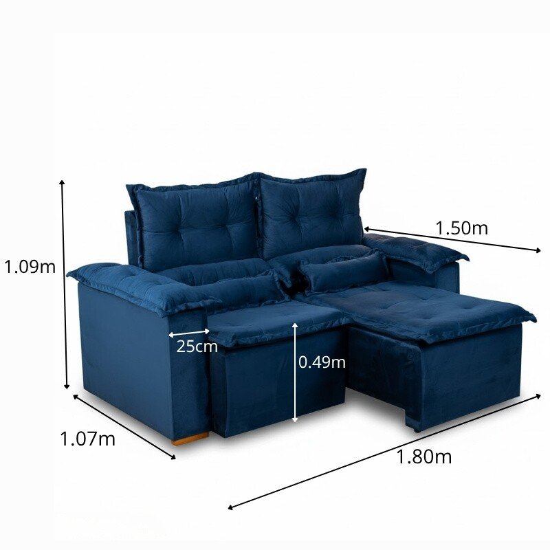 3{%%}Descrição{%%}Sofá Retrátil e Reclinável Nicole 1.80m Veludo Azul A16 – Sem Caixa