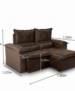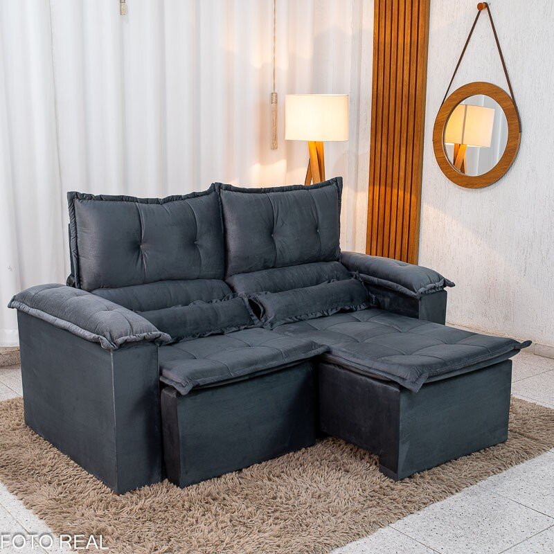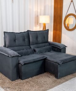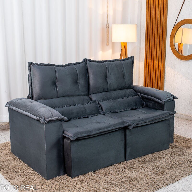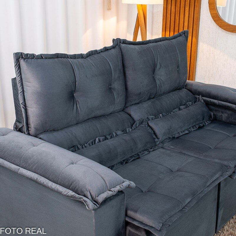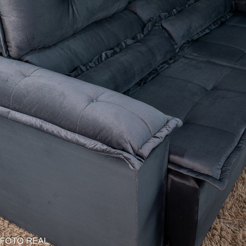 3{%%}Descrição{%%}Sofá Retrátil e Reclinável Nicole 1.80m Veludo Grafite A15 – Sem Caixa