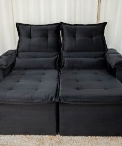 3{%%}Descrição{%%}Sofá Retrátil e Reclinável Nicole 1.80m Veludo Preto A14 – Sem Caixa