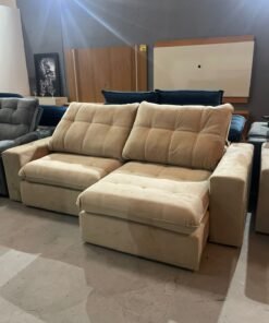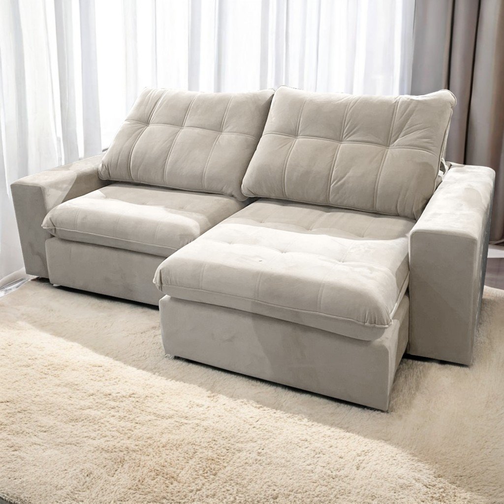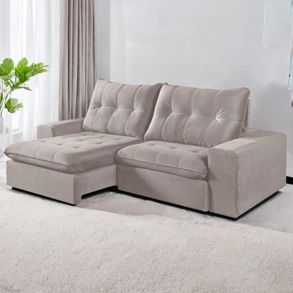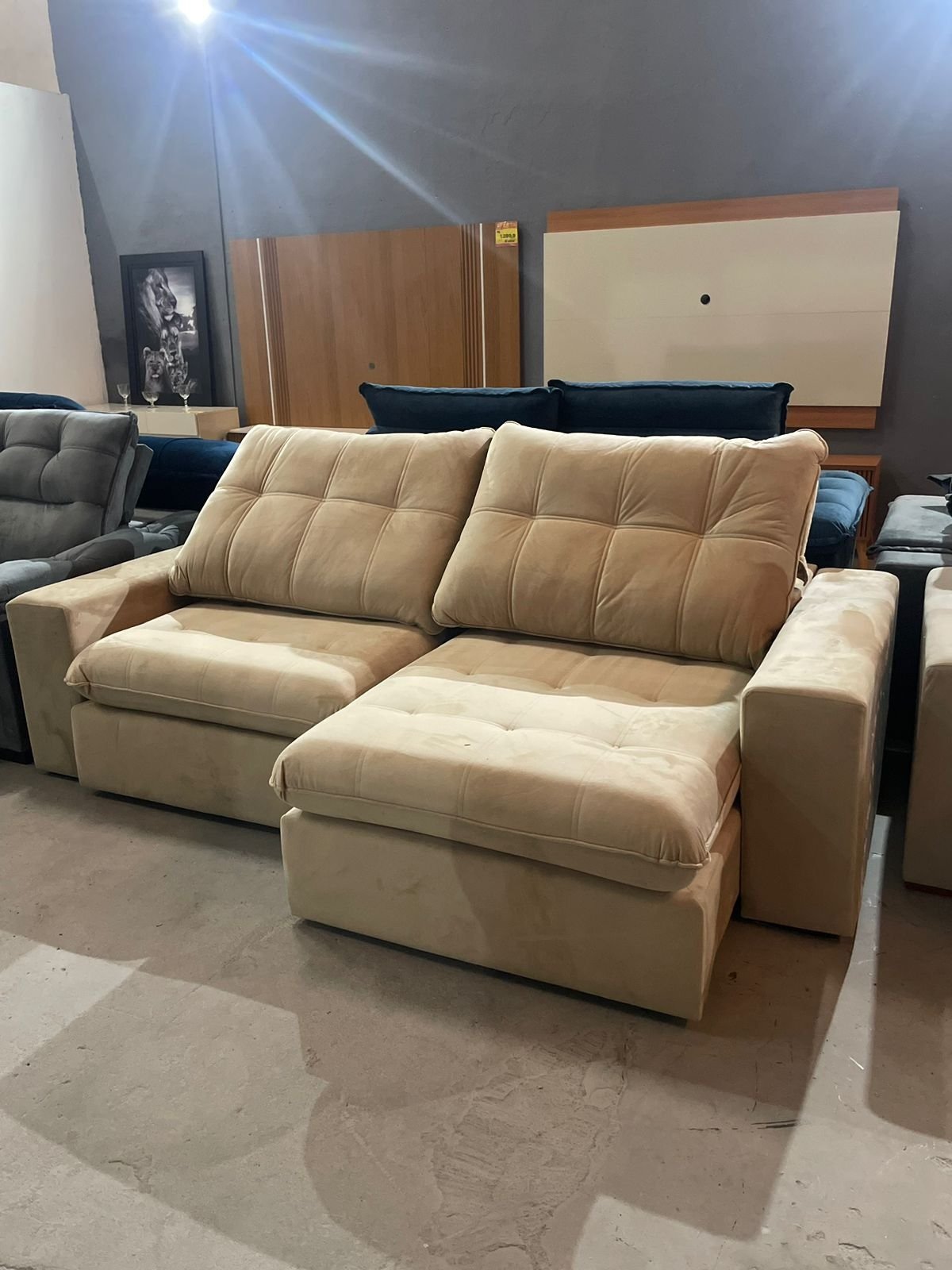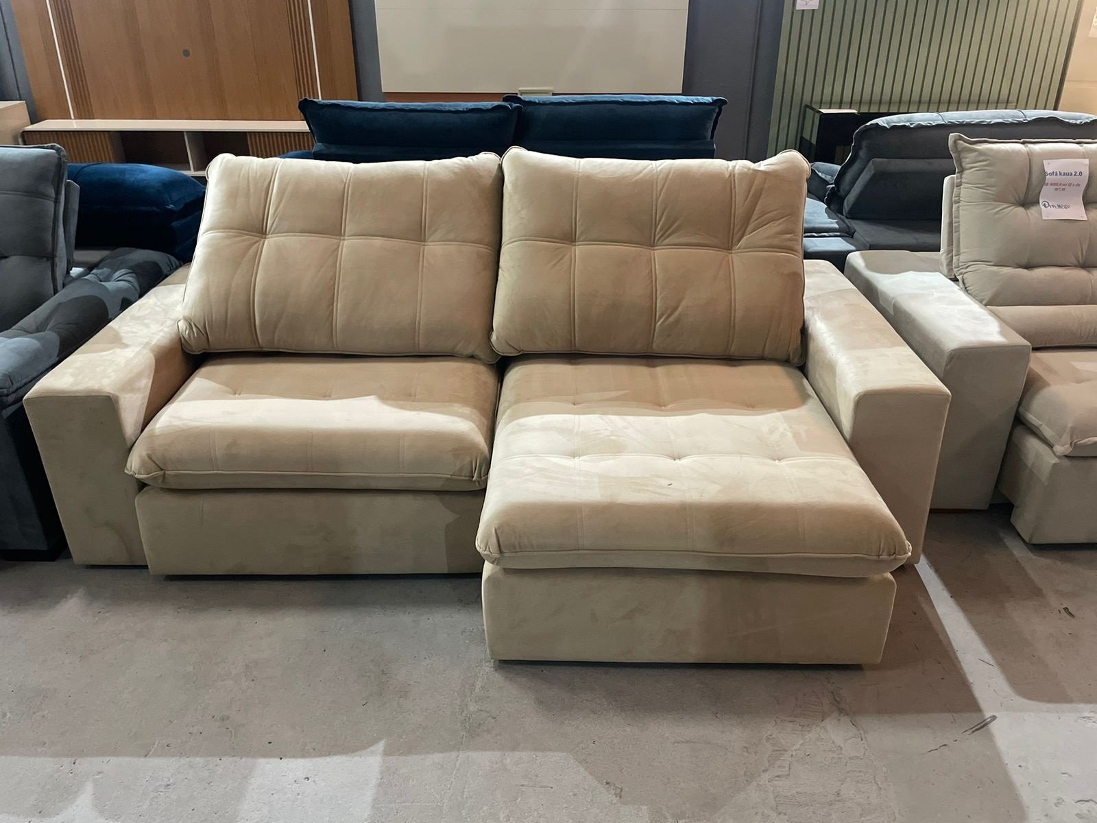 Sofá Retrátil e Reclinável Niterói 2,50 m Veludo Bege – SINGULAR ESTOFADOS