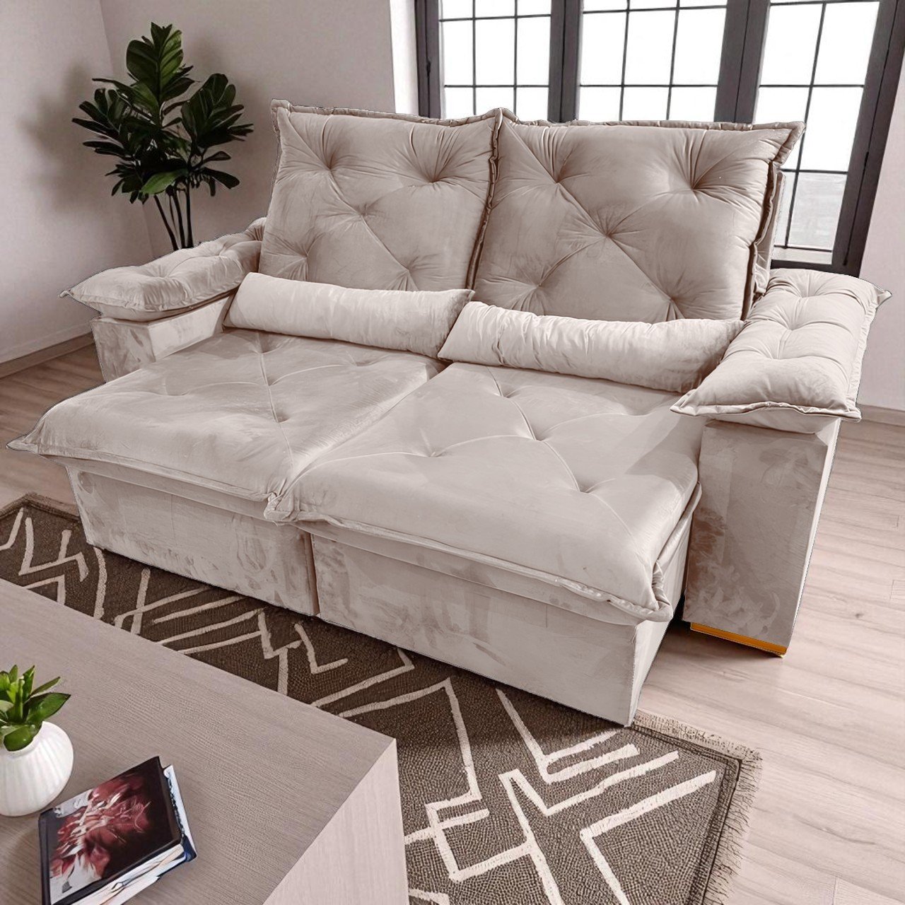 Sofá Retrátil e Reclinável Porto Madero 2,00 m Veludo Bege – IMPERIAL DECOR