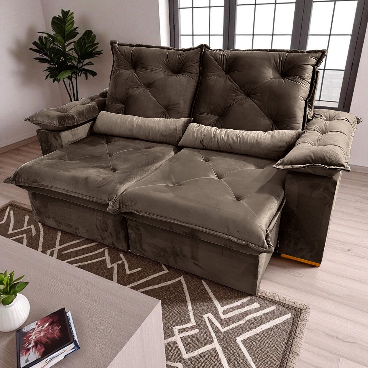 Sofá Retrátil e Reclinável Porto Madero 2,00 m Veludo Marrom – IMPERIAL DECOR