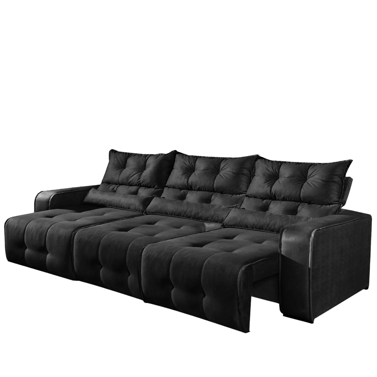 Sofá Retrátil e Reclinável Premier 2,50 m Veludo Preto – DECORAR ESTOFADOS