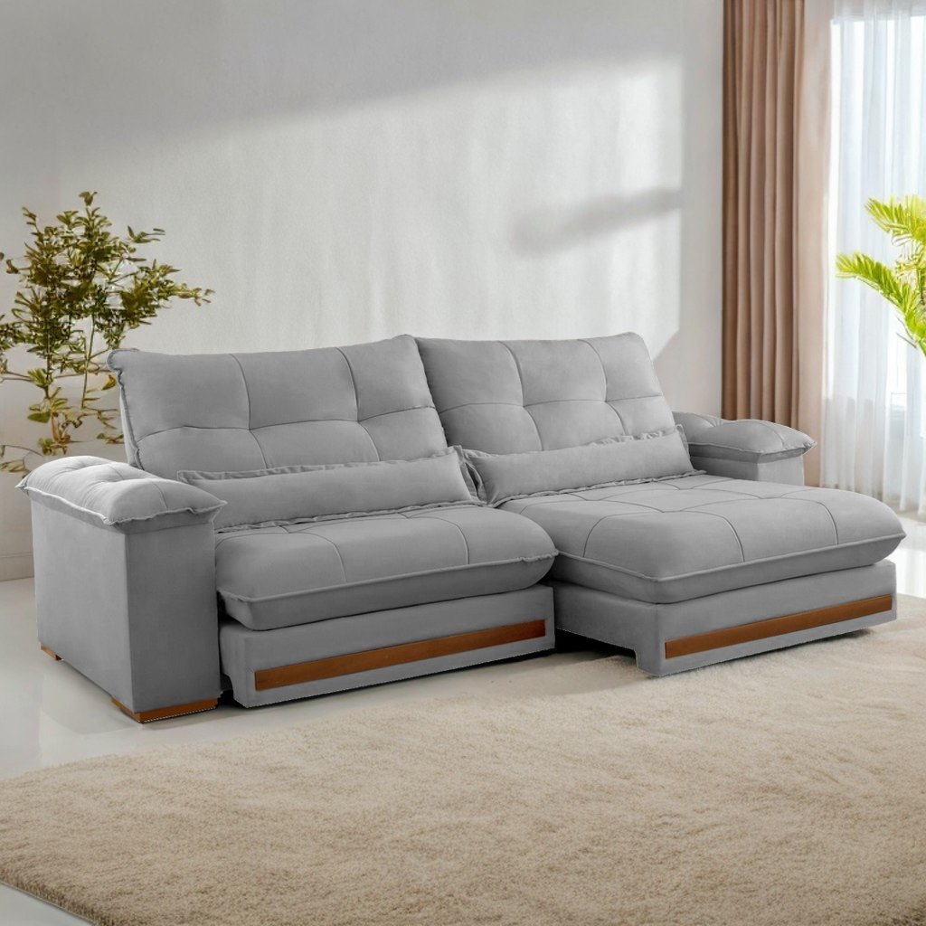 Sofá Retrátil e Reclinável Qatar 2,00 m Veludo Cinza B010 – TREVO ESTOFADOS