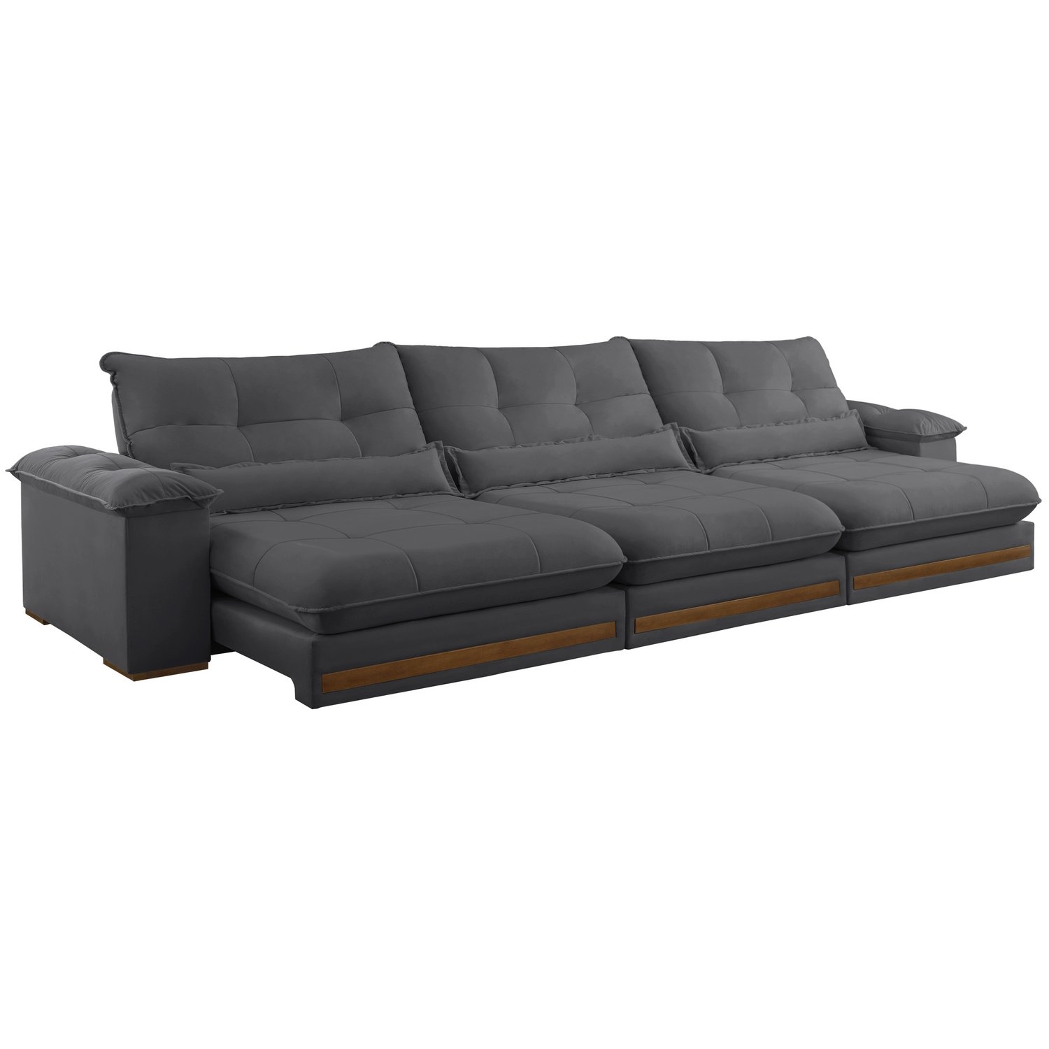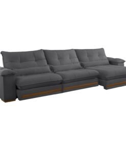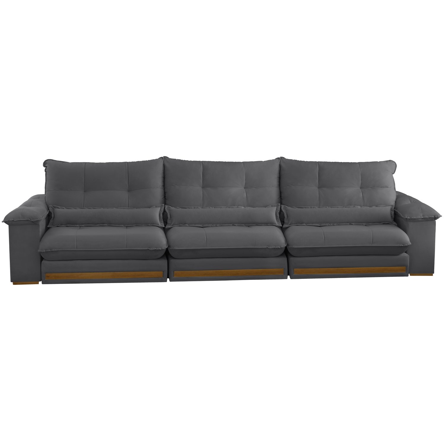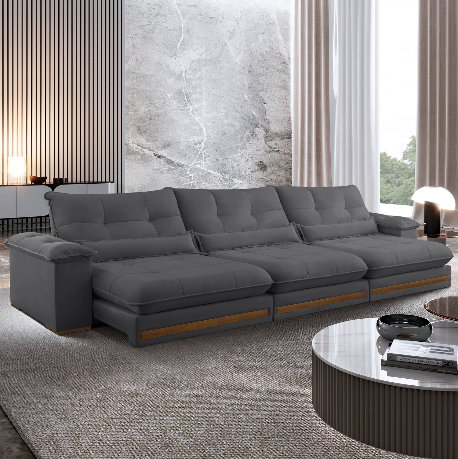 Sofá Retrátil e Reclinável Qatar 3,50 m Veludo Cinza B010 – TREVO ESTOFADOS
