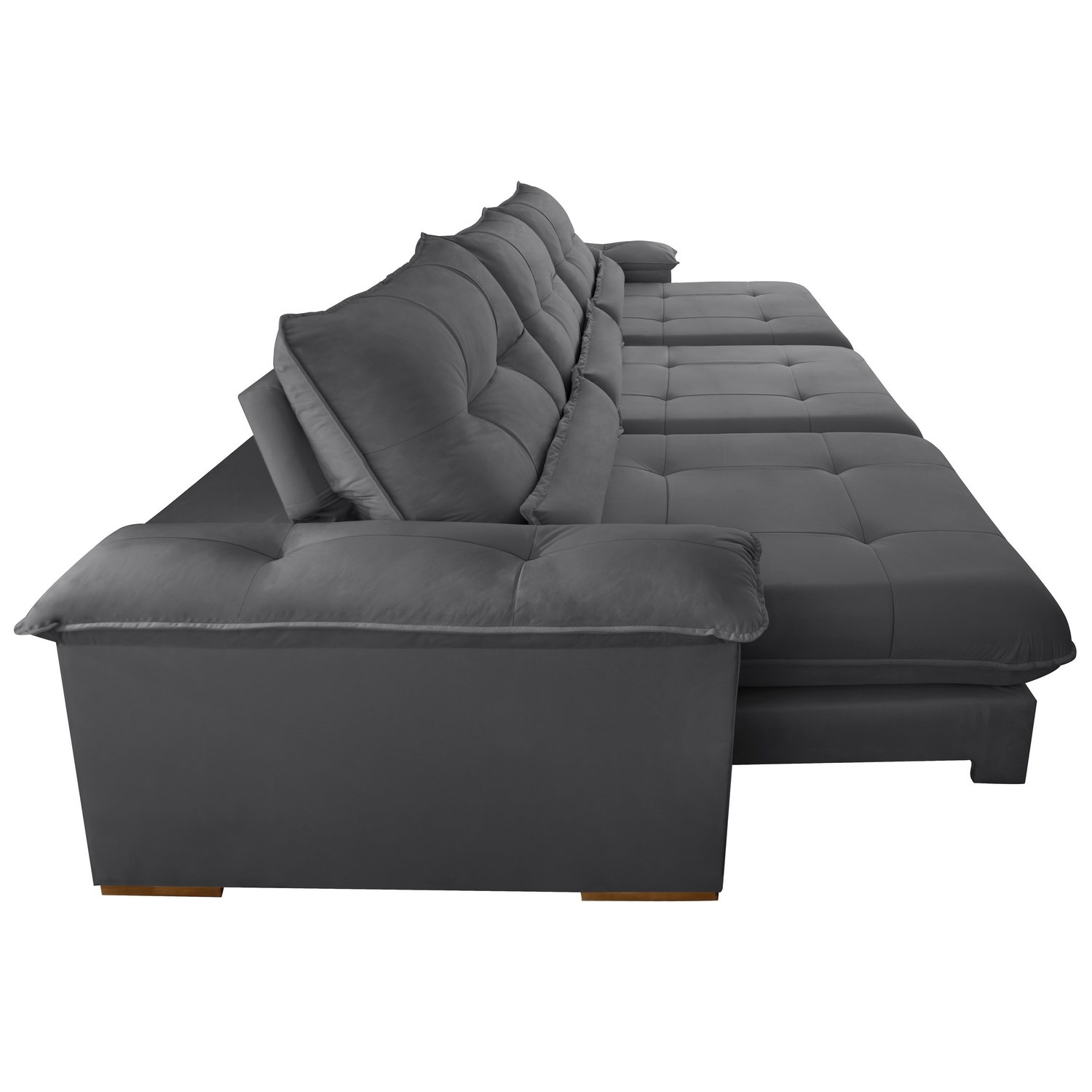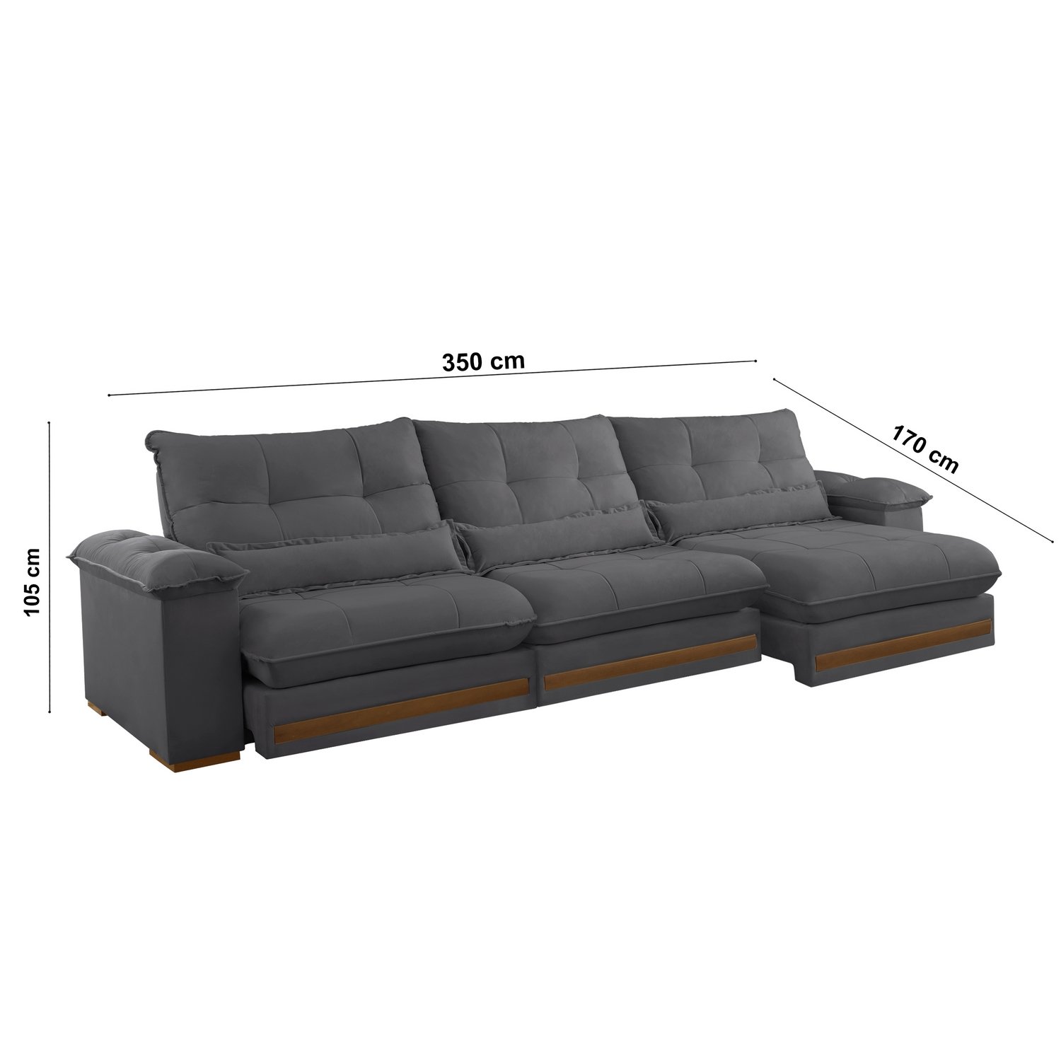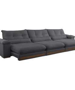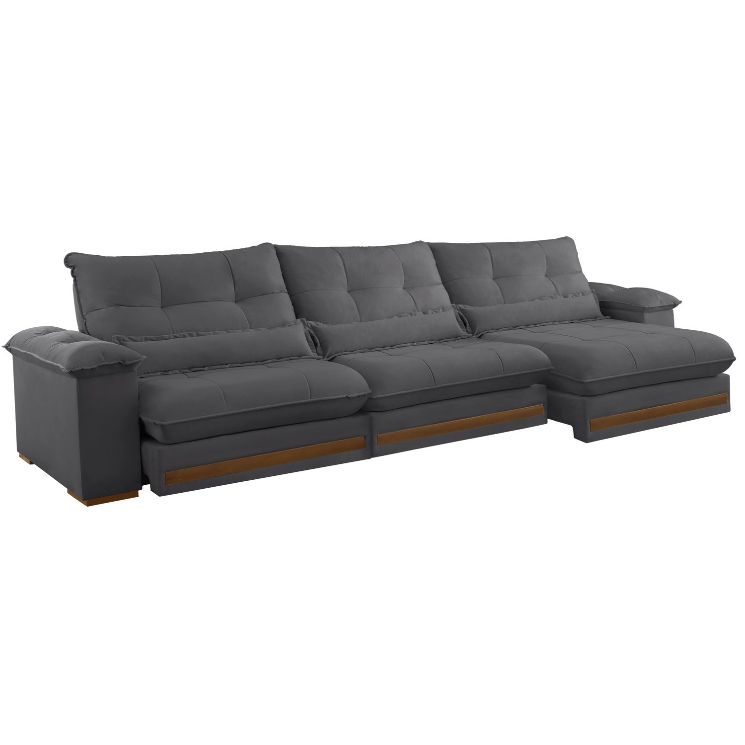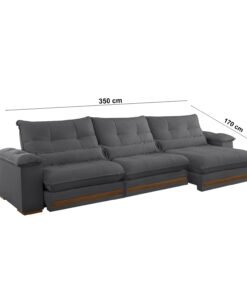 Sofá Retrátil e Reclinável Qatar 3,50 m Veludo Cinza B010 – TREVO ESTOFADOS