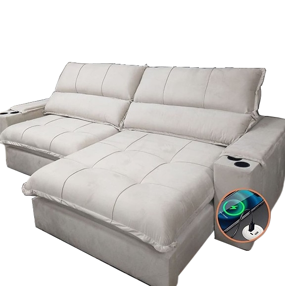 Sofá Retrátil e Reclinável Zeus 2,50 m Bege – ZARAT ESTOFADOS
