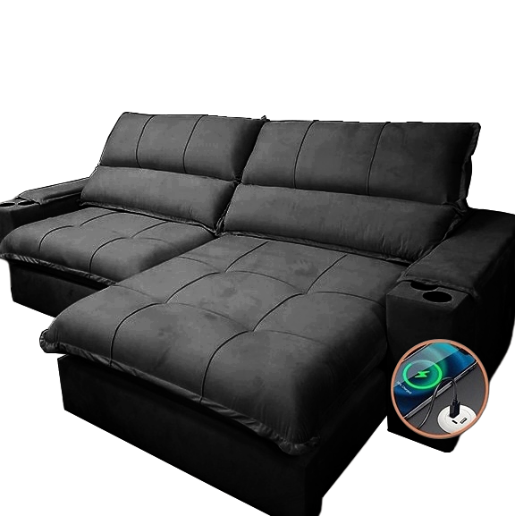 Sofá Retrátil e Reclinável Zeus 2,90 m Preto – ZARAT ESTOFADOS