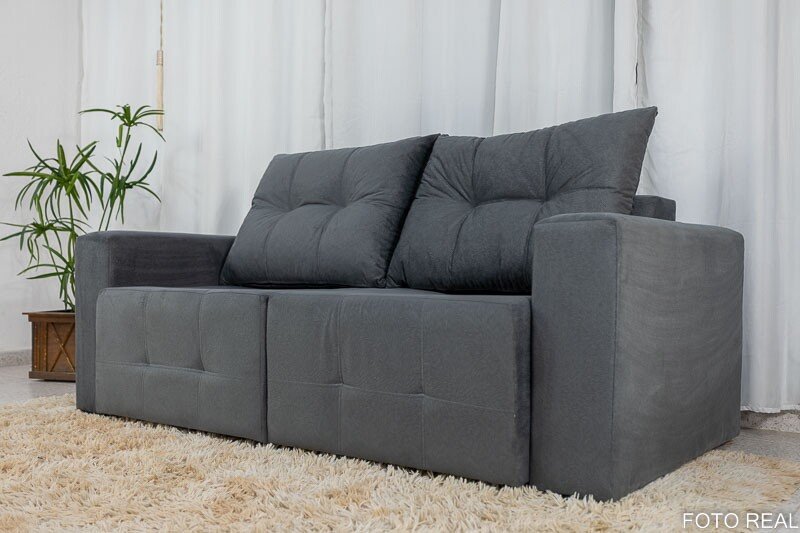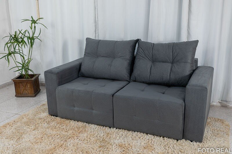 3{%%}Descrição{%%}Sofá Retrátil Havaí 1.80m Veludinho Cinza 20 – Sem Caixa