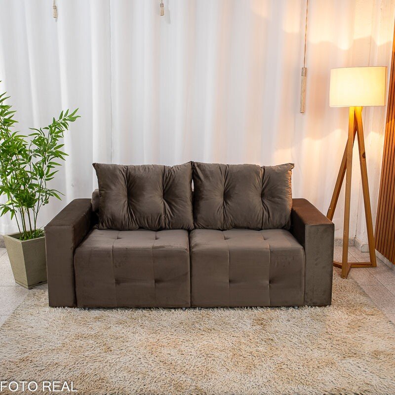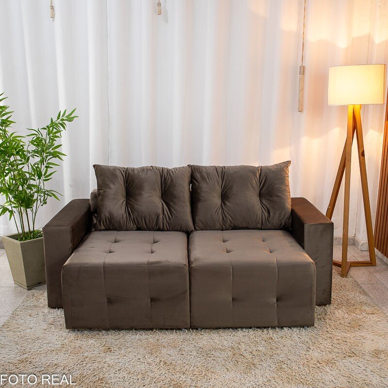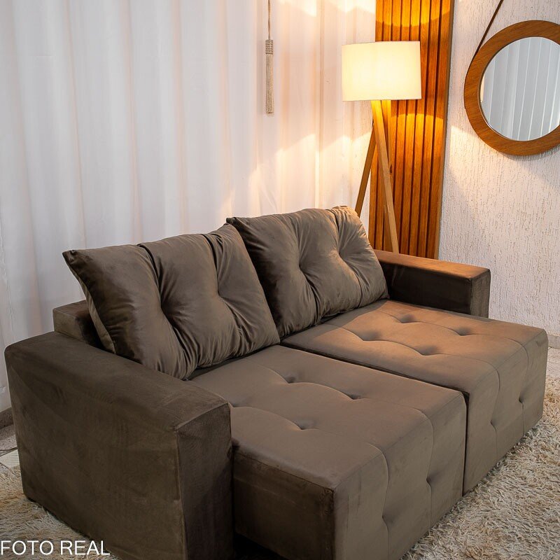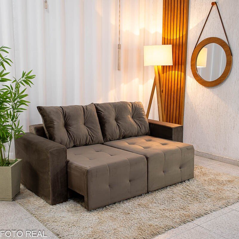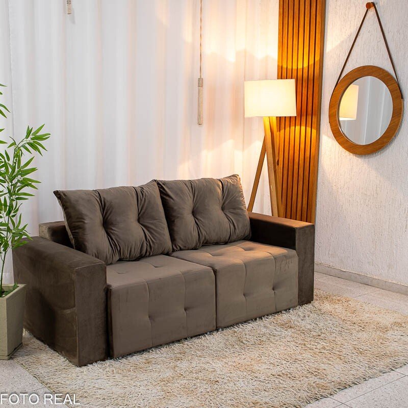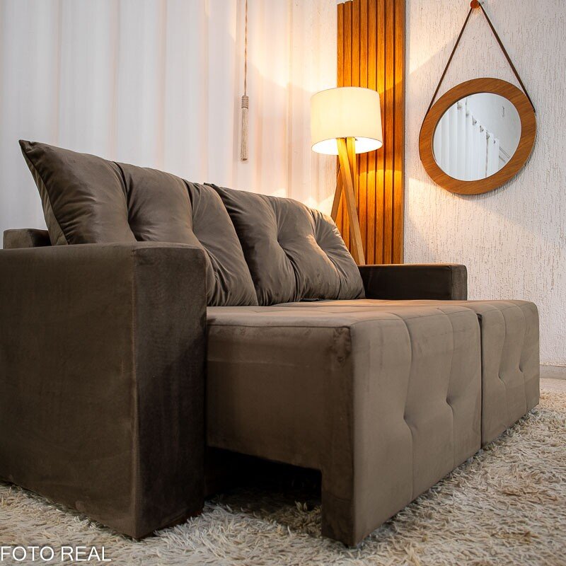 3{%%}Descrição{%%}Sofá Retrátil Havaí 1.80m Veludo Marrom – Sem Caixa