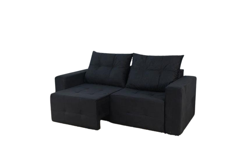 Sofá Retrátil Havaí 1,80 m Veludinho Preto – QUINE ESTOFADOS