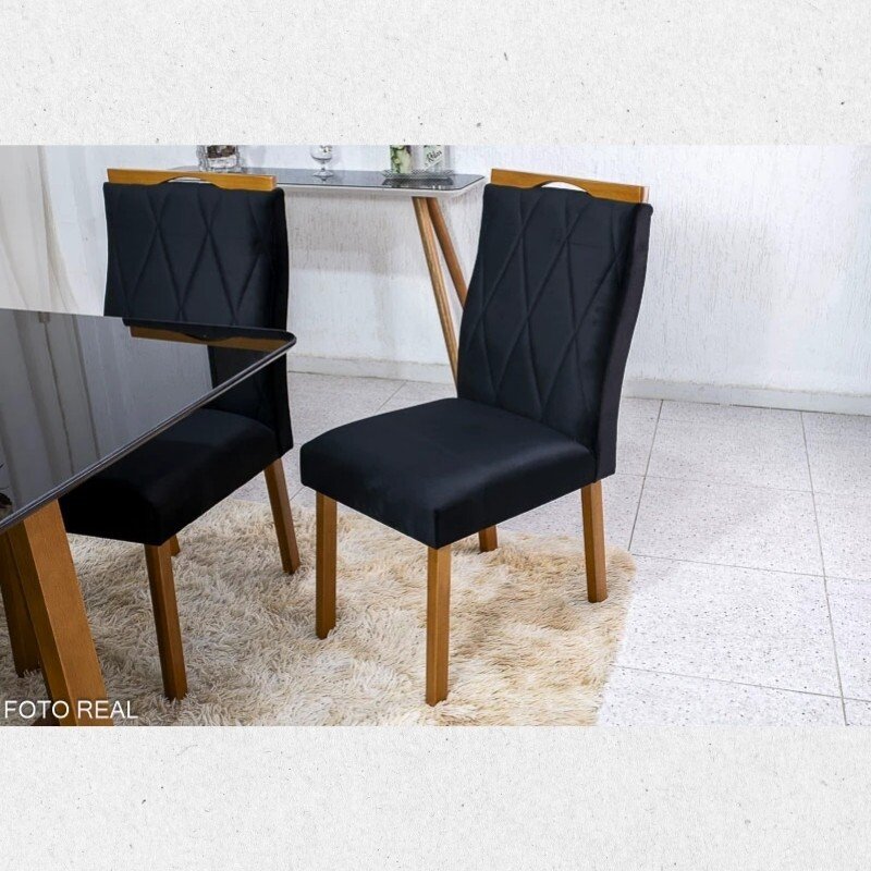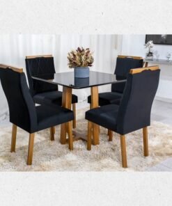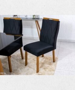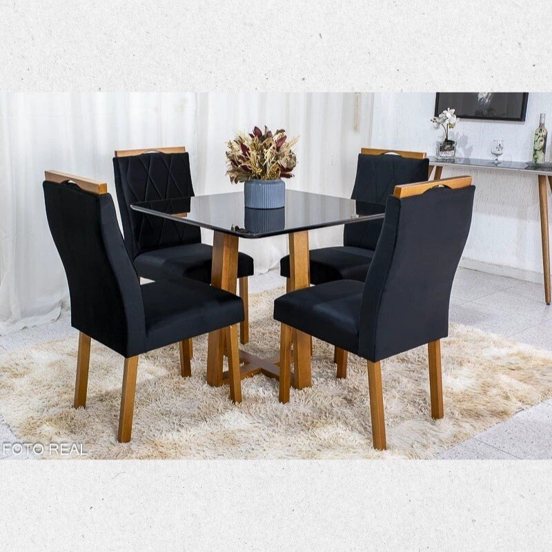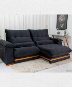 3{%%}Descrição{%%}Sofá Retrátil Ibis 2.30m Veludo Preto 820 + Mesa Pedro Mel Tampo Vidro Preto 90×90 4 Cad. Lisboa Veludo Preto 504