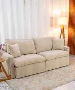 3{%%}Descrição{%%}Sofá Retrátil Luma 2.00m Veludo Premium Bege 37 – Sem Caixa
