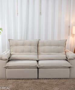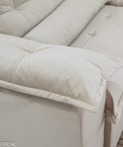 3{%%}Descrição{%%}Sofá Retrátil Reclinável Emanuelly Veludo Bege 01 Larg. 2.30m – D28 Soft