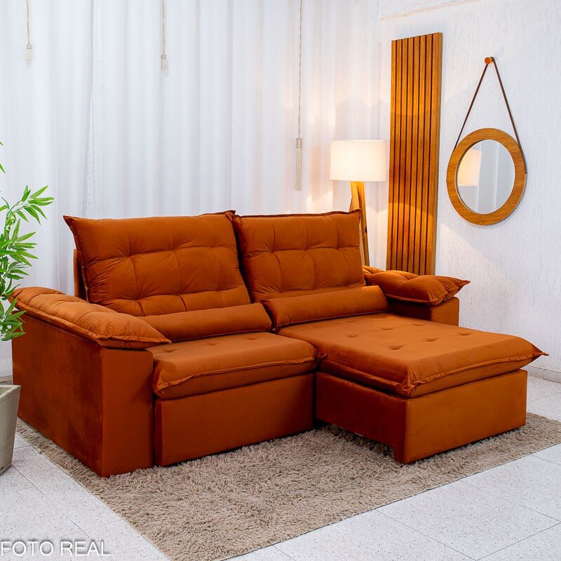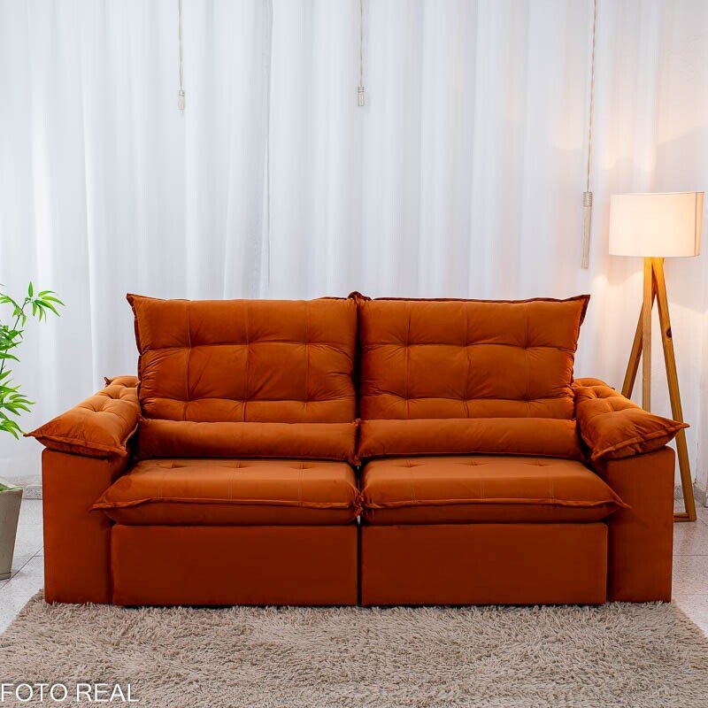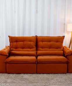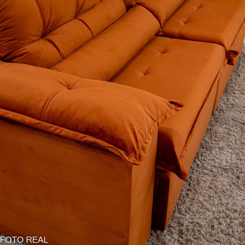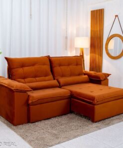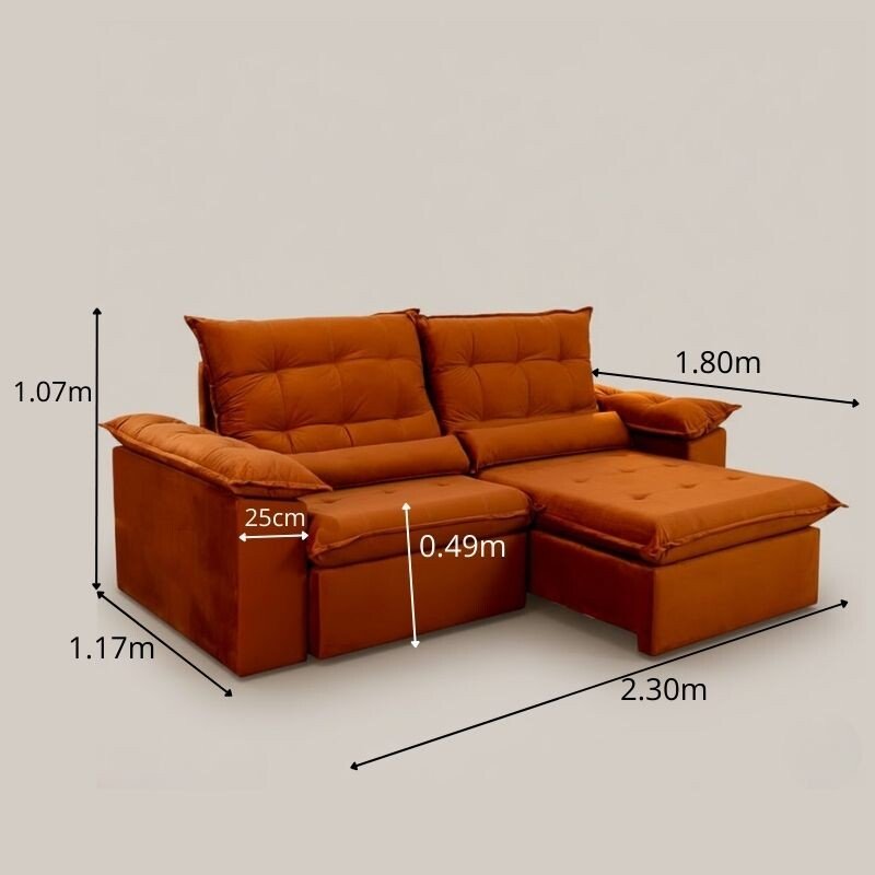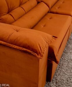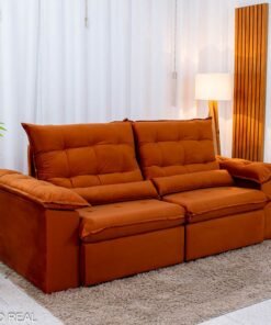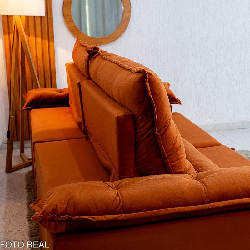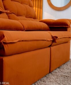 3{%%}Descrição{%%}Sofá Retrátil Reclinável 2.30m Emanuelly Veludo Terracota 24 – D28 Soft