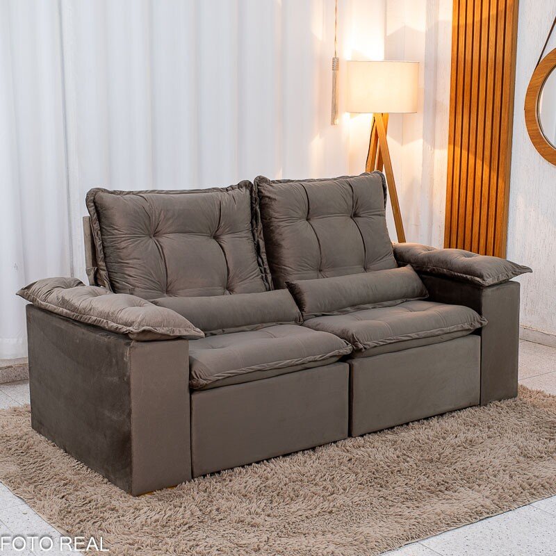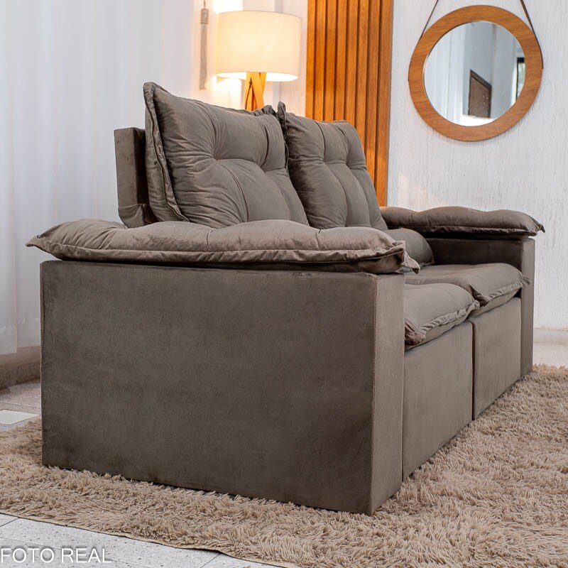 3{%%}Descrição{%%}Sofá Retrátil Reclinável Grécia Veludo Marrom Larg. 2.00m – Sem Caixa