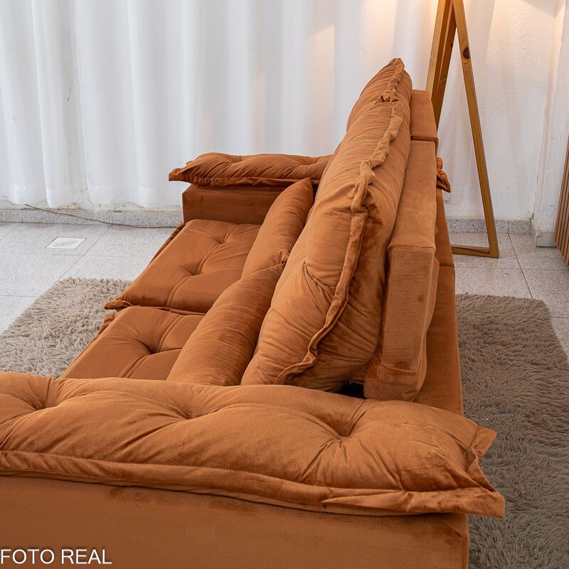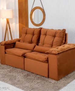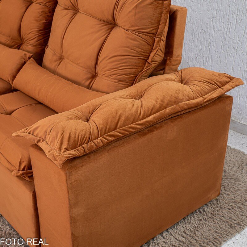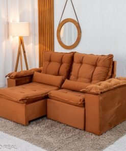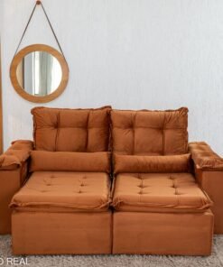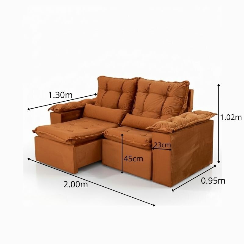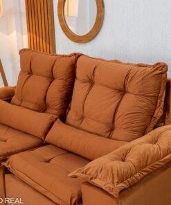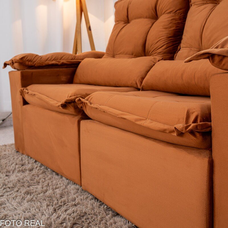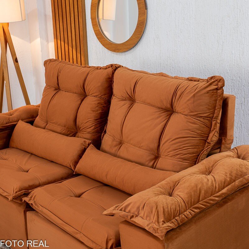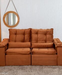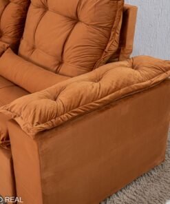 3{%%}Descrição{%%}Sofá Retrátil Reclinável Grécia Veludo Terracota Larg. 2.00m – Sem Caixa