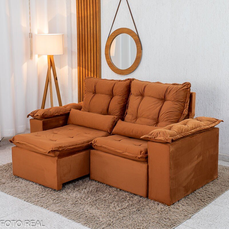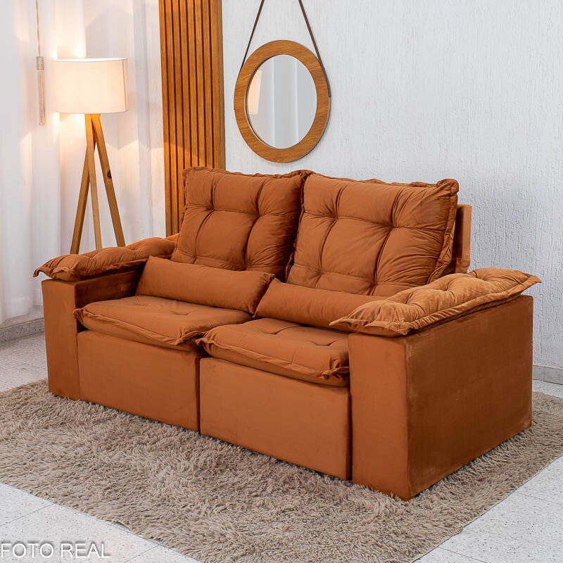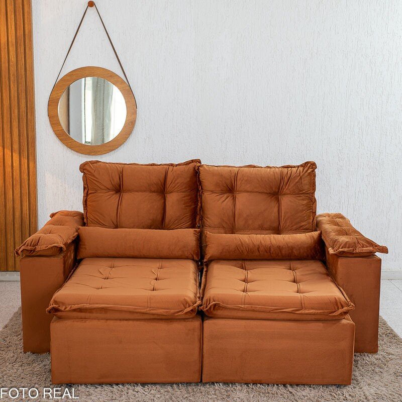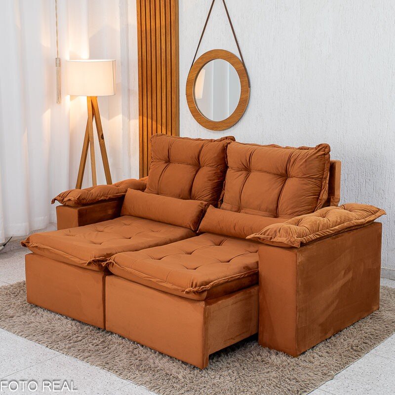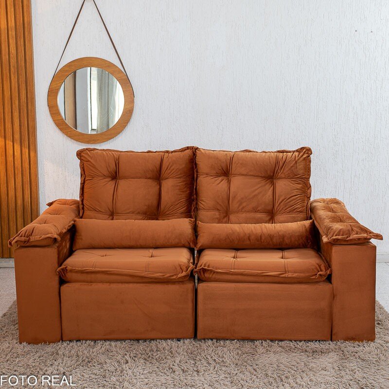 3{%%}Descrição{%%}Sofá Retrátil Reclinável Grécia Veludo Terracota Larg. 2.00m – Sem Caixa