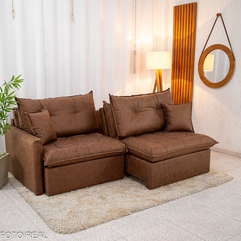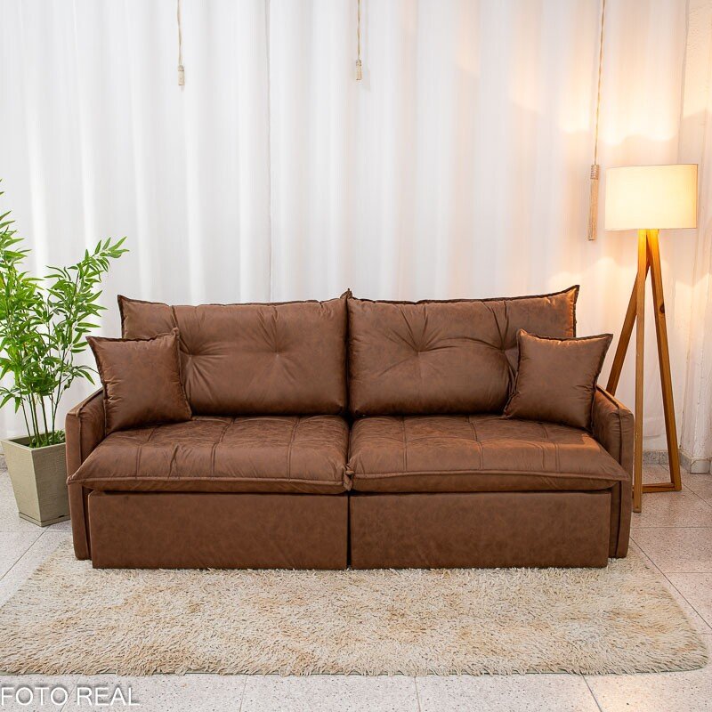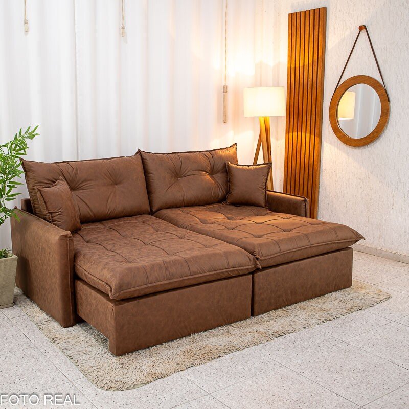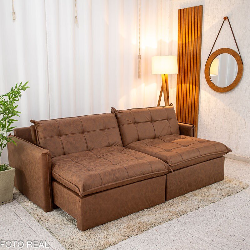 3{%%}Descrição{%%}Sofá Retrátil Reclinável Andradas 2.20m Korino Marrom 410 Molas Ensacadas – Sem Caixa