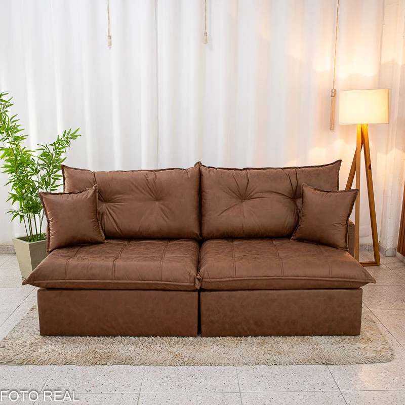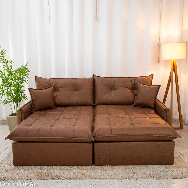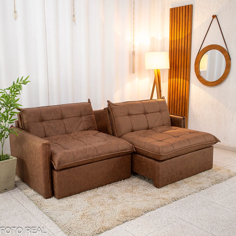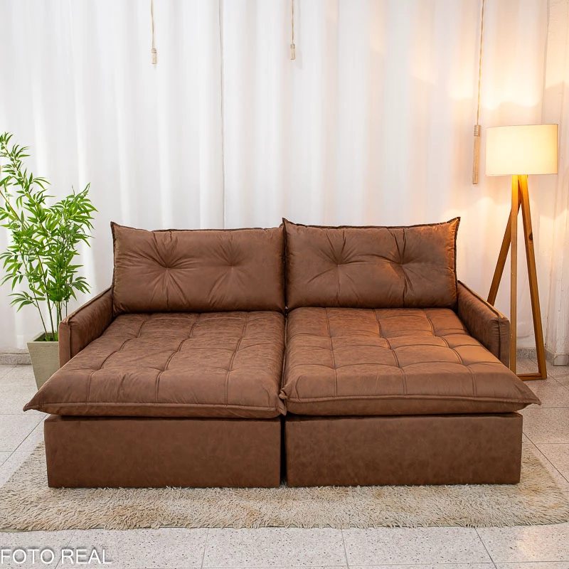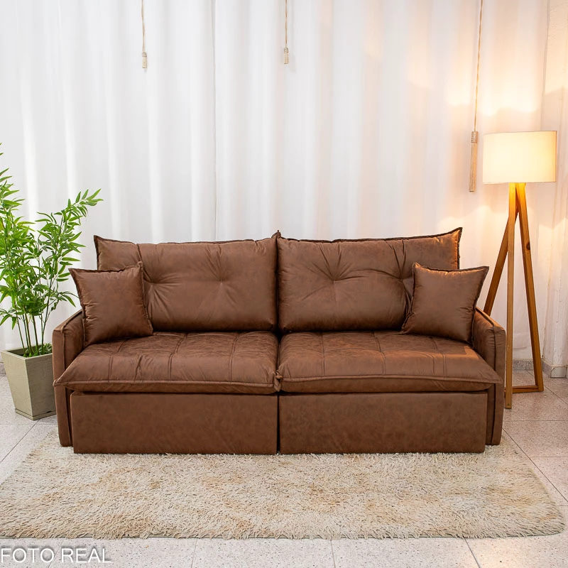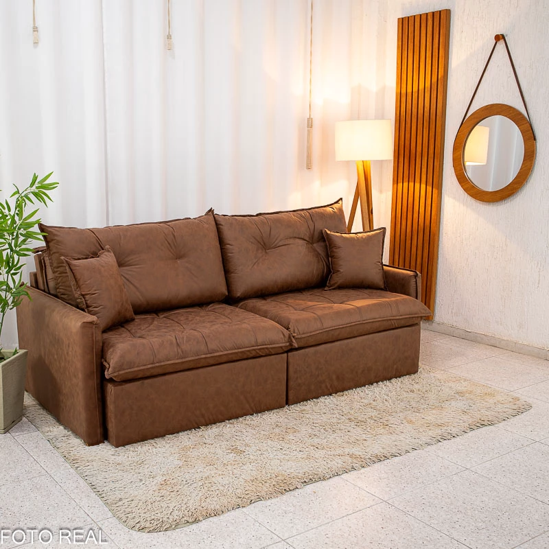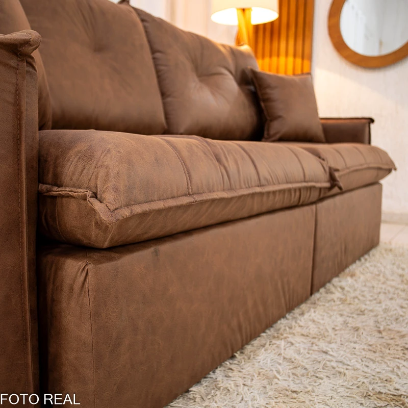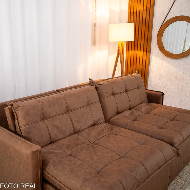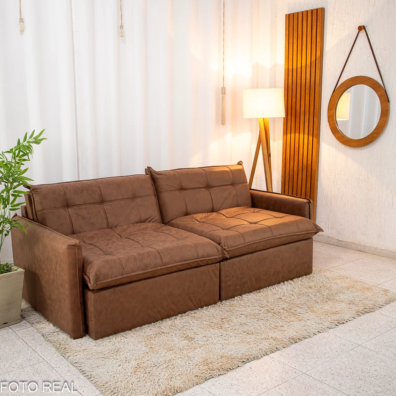 Sofá Retrátil Reclinável Andradas 2.20m Korino Marrom 410 Molas Ensacadas – Sem Caixa
