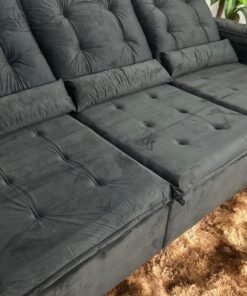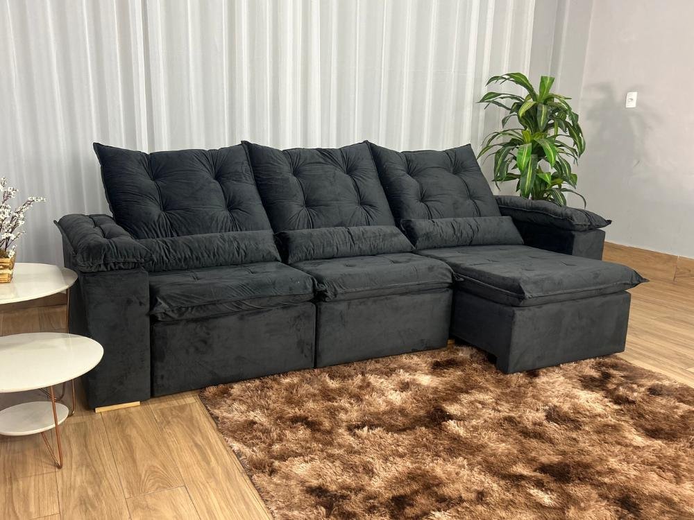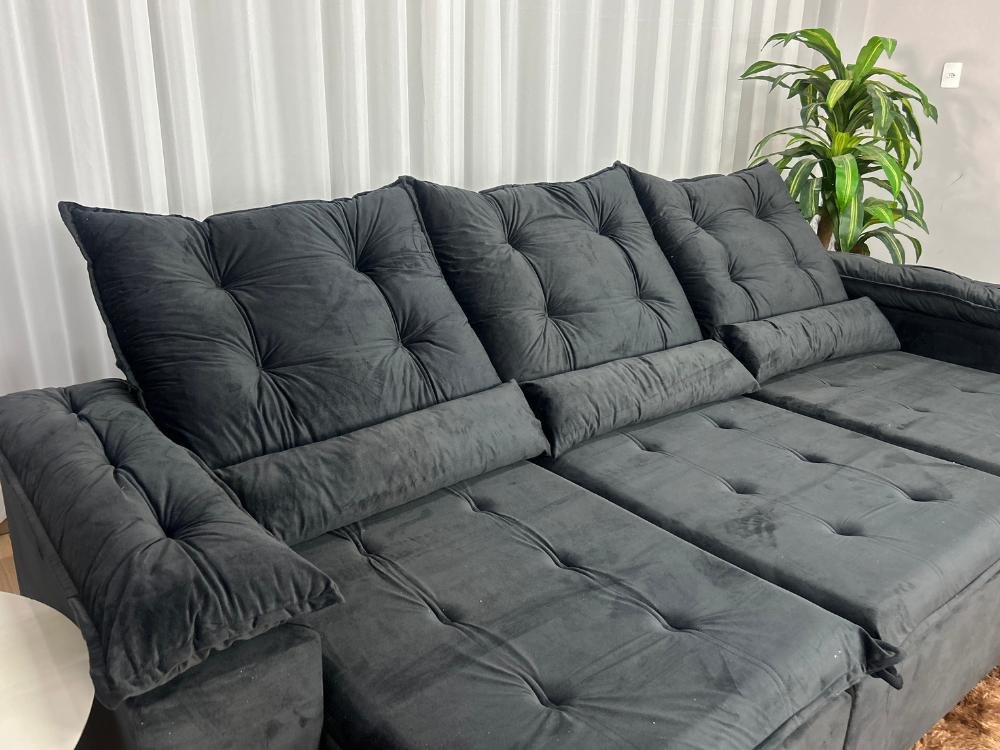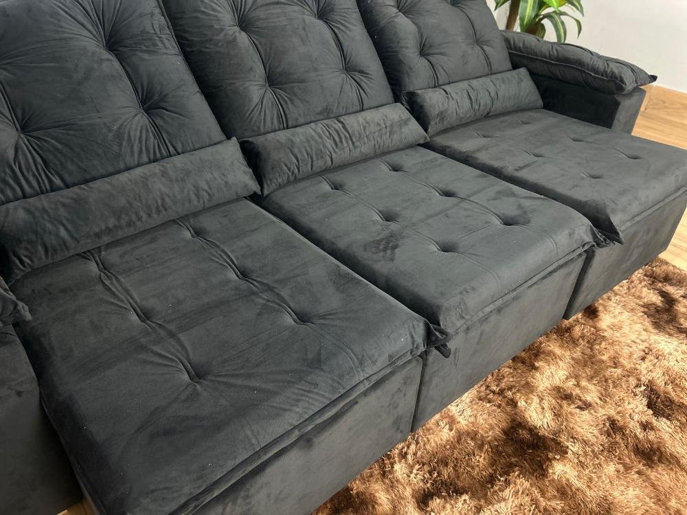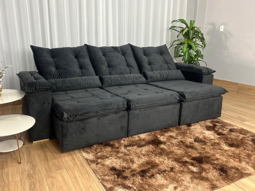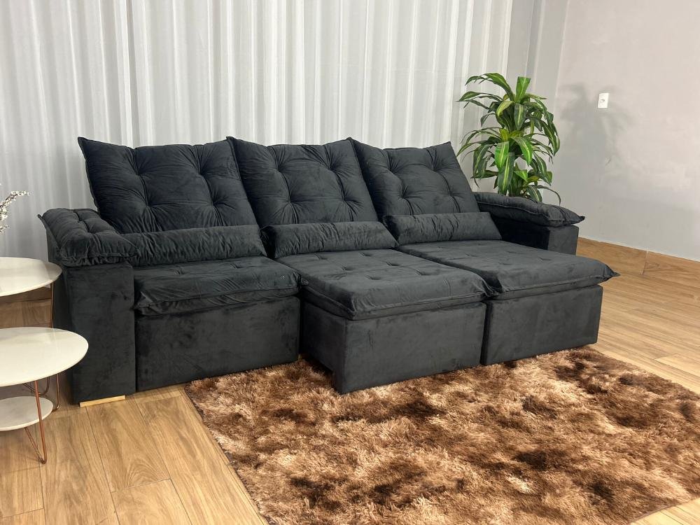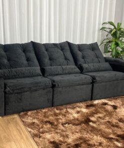 Sofá Retrátil Reclinável Atenas 2.70m – Preto Veludo