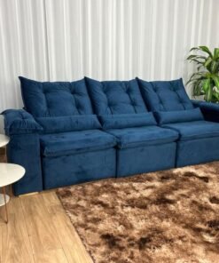 Sofá Retrátil Reclinável Grécia Veludo Azul Larg. 2.70m – Sem Caixa (cópia)