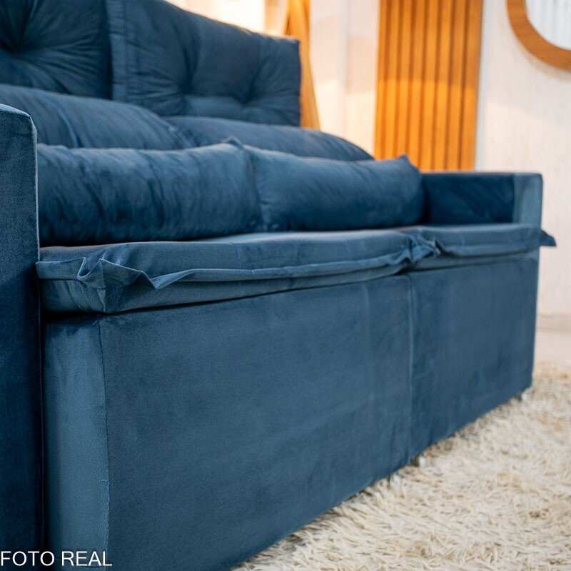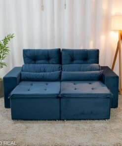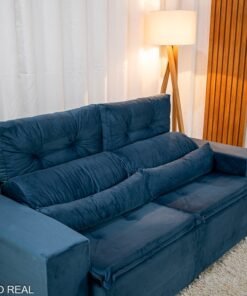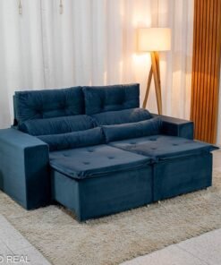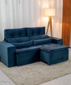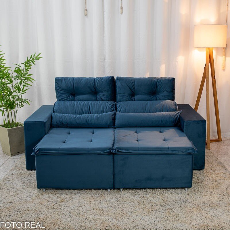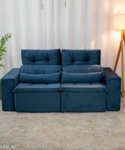 3{%%}Descrição{%%}Sofá Retrátil Reclinável Bia 1.95m Veludo Azul – D28