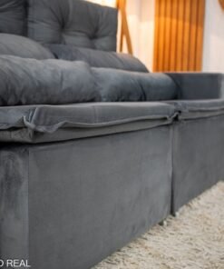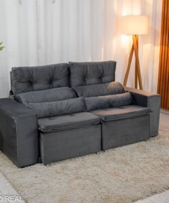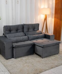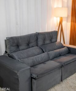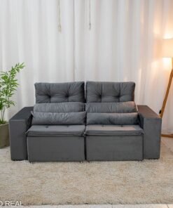 3{%%}Descrição{%%}Sofá Retrátil Reclinável Bia 1.95m Veludo Cinza – D28