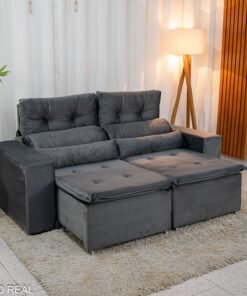3{%%}Descrição{%%}Sofá Retrátil Reclinável Bia 1.95m Veludo Cinza – D28