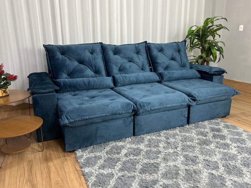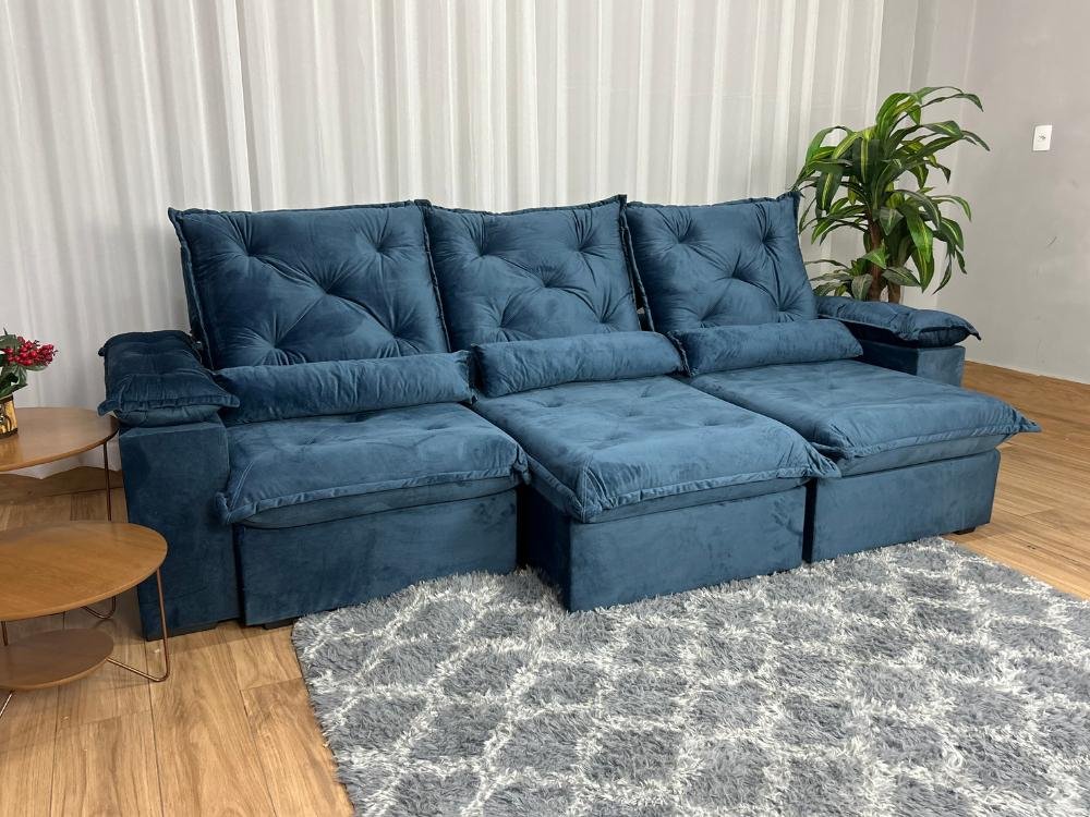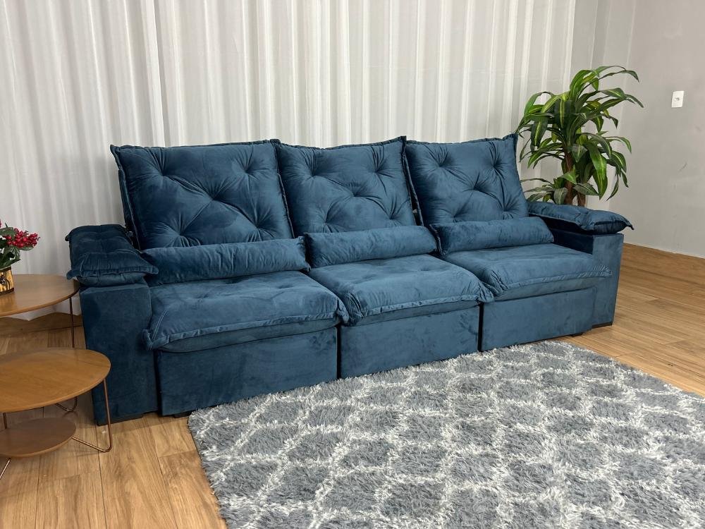 Sofá Retrátil Reclinável Brasão 2.70m – Azul Veludo