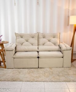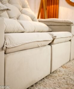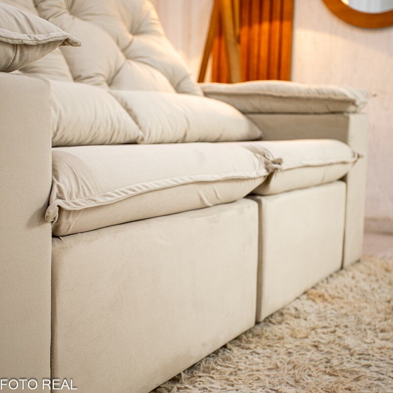 3{%%}Descrição{%%}Sofá Retrátil Reclinável Chile 1.96m Veludo Bege 406 – D28 Sof