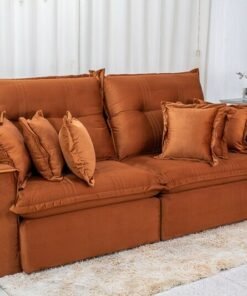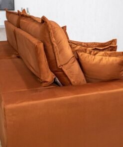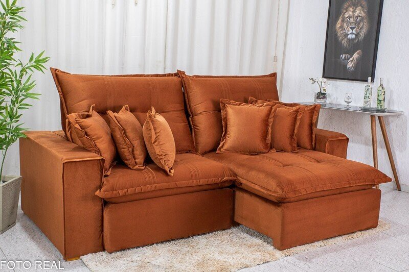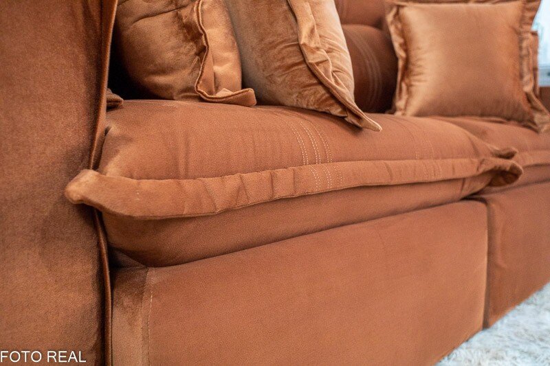 3{%%}Descrição{%%}Sofá Retrátil Reclinável Ferrara Veludo Terracota Larg. 2.50m – D33 e Molas Ensacadas
