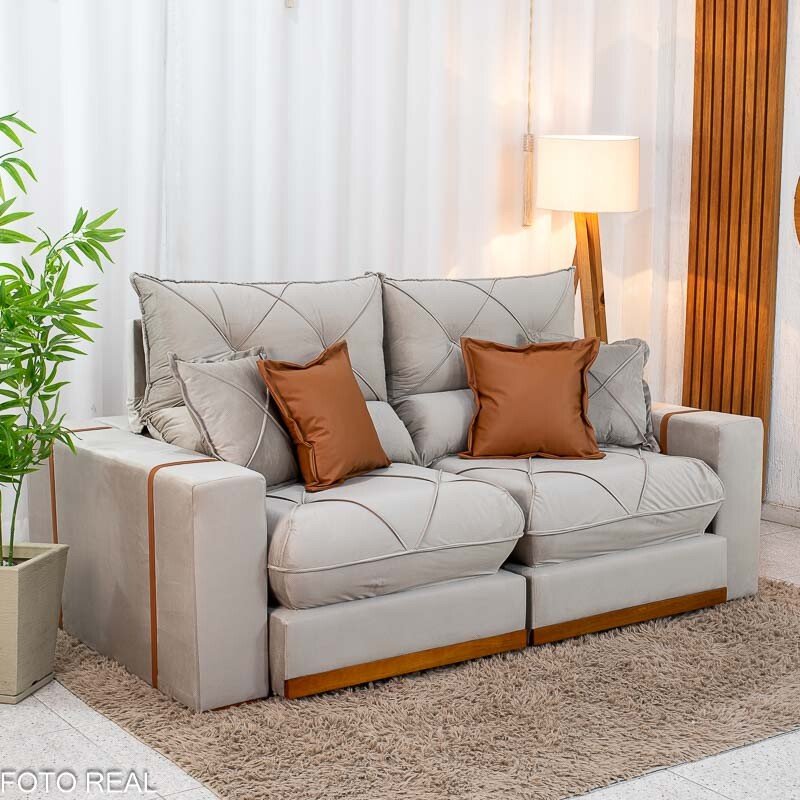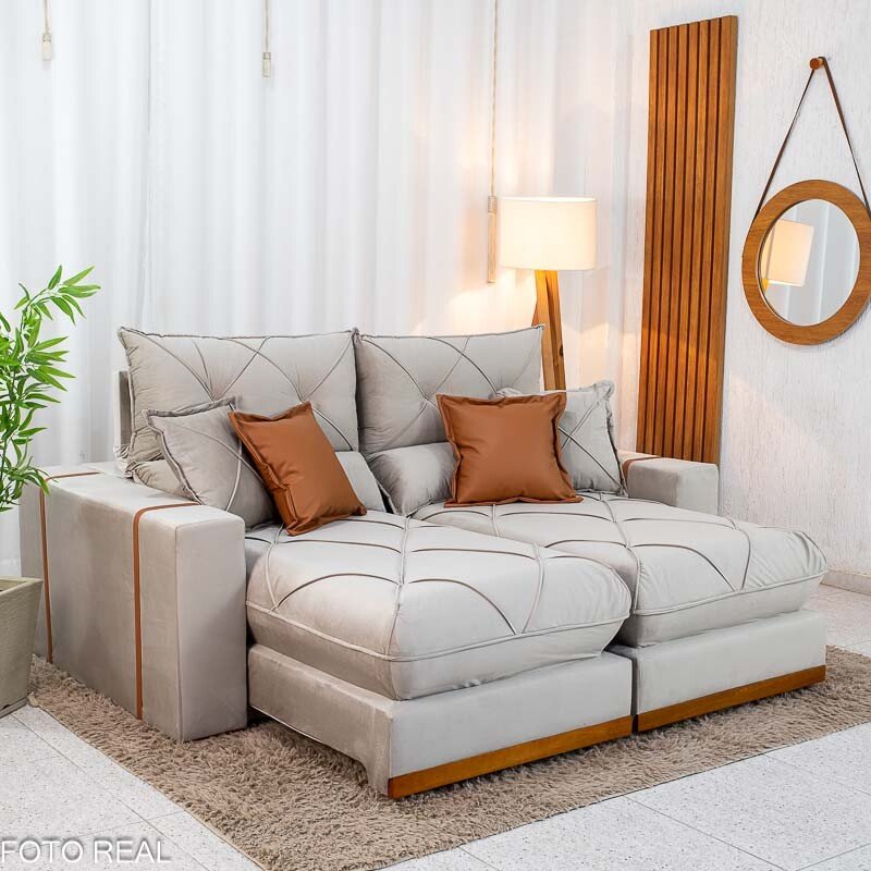 3{%%}Descrição#Benéficos das molas ensacadas{%%}Sofá Retrátil Reclinável Gran Bello 2.00m Veludo Capuccino – Molas Ensacadas