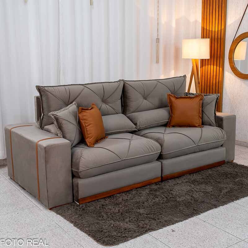 3{%%}Descrição#Benéficos das molas ensacadas{%%}Sofá Retrátil Reclinável Gran Bello 2.30m Veludo Capuccino – Molas Ensacadas