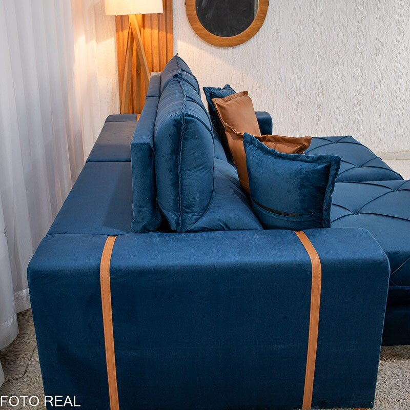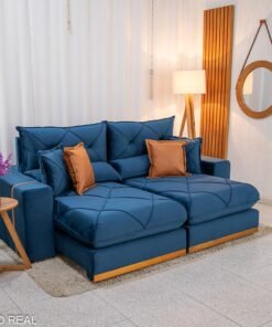 3{%%}Descrição#Benéficos das molas ensacadas{%%}Sofá Retrátil Reclinável Gran Bello Veludo Azul Larg. 2.50m – Molas Ensacadas Pocket
