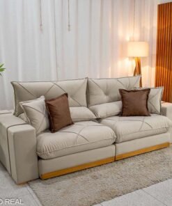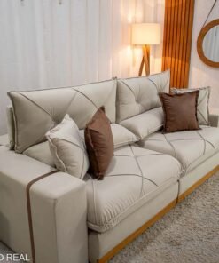 3{%%}Descrição#Benéficos das molas ensacadas{%%}Sofá Retrátil Reclinável Gran Bello 2.90m Veludo Bege 01 – Molas Ensacadas