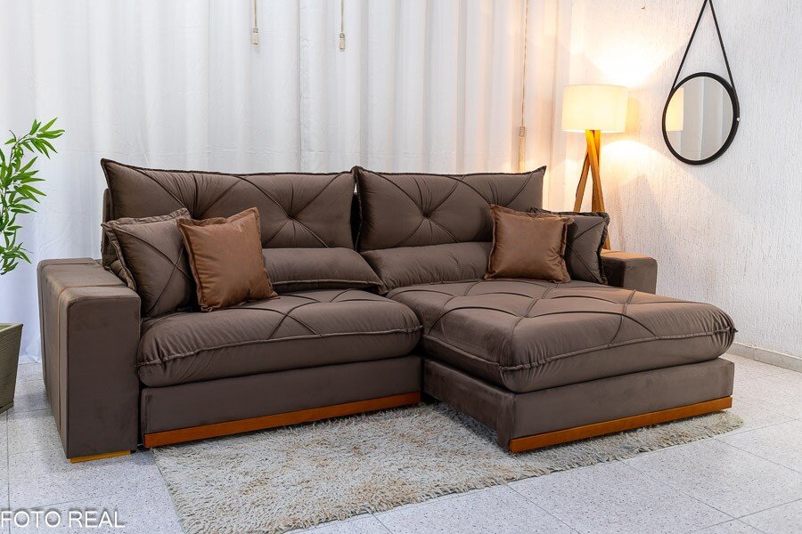 3{%%}Descrição#Benefícios das molas ensacadas{%%}Sofá Retrátil Reclinável Gran Bello 2.90m Veludo Marrom – Molas Ensacadas
