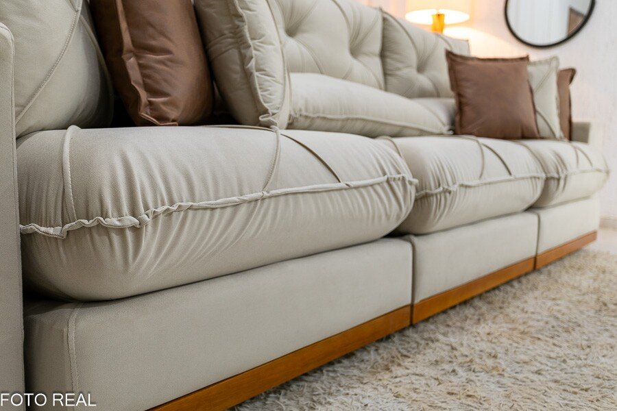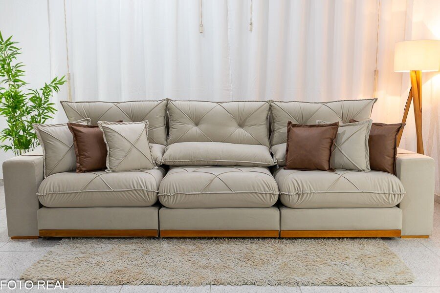 3{%%}Descrição#Benefícios das molas ensacadas{%%}Sofá Retrátil Reclinável Gran Bello 3.20m Veludo Bege Claro – Molas Ensacadas