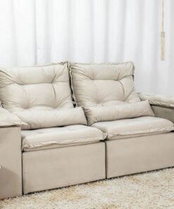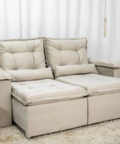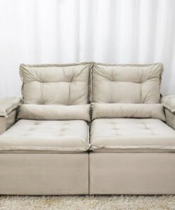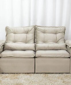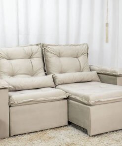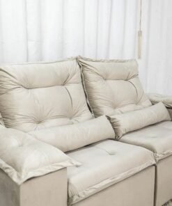 3{%%}Descrição{%%}Sofá Retrátil Reclinável Grécia 2.00m Veludo Bege – Sem caixa + Rack Lazuli Off White TV até 55 Pol. Larg. 1.35m Bechara