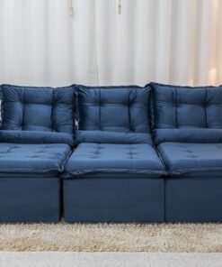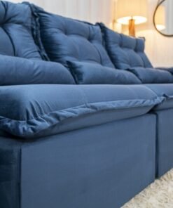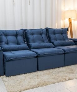 3{%%}Descrição{%%}Sofá Retrátil Reclinável Grécia Veludo Azul Larg. 2.70m – Sem Caixa