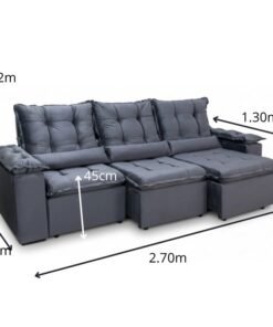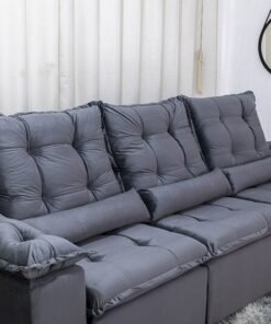 3{%%}Descrição{%%}Sofá Retrátil Reclinável Grécia Veludo Cinza Larg. 2.70m – Sem Caixa