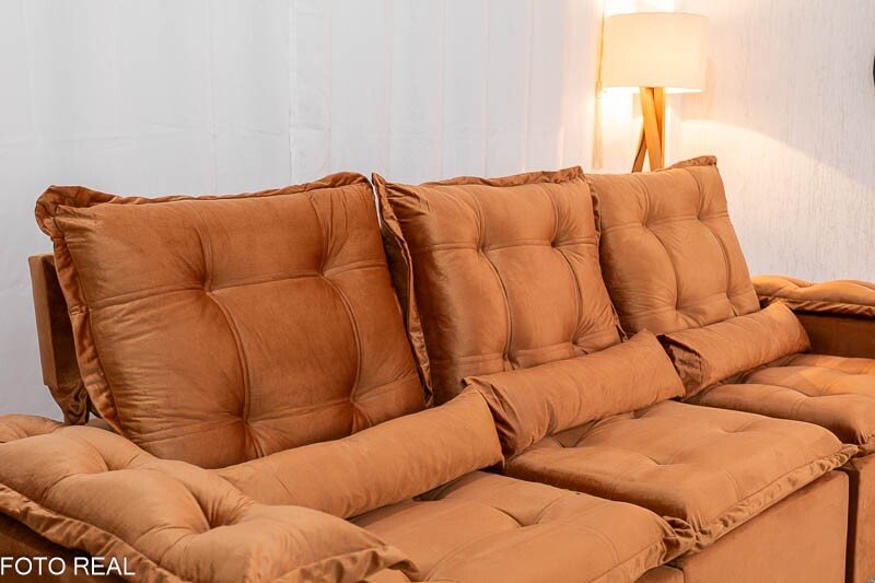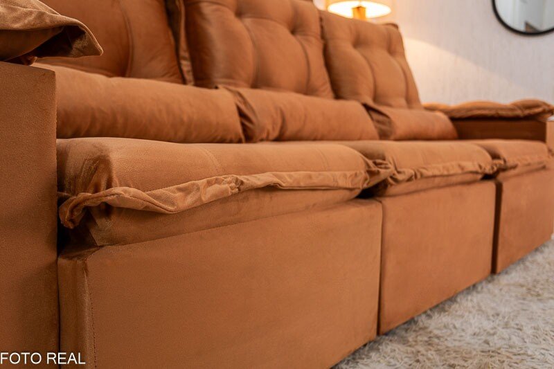 Atenção: Informamos que é normal haver uma abertura entre os módulos dos sofás retráteis. Essa abertura é necessária para evitar atrito entre os módulos durante o movimento de abrir e fechar, prevenindo o desgaste do tecido.