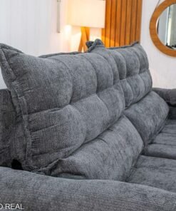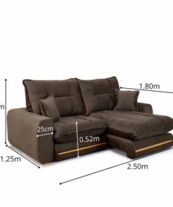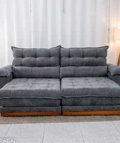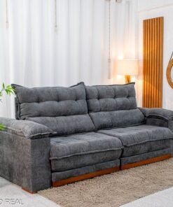 Sofá Retrátil Reclinável Itauna 2.50m Chenille Grafite 573 D28 Soft – Molas Ensacadas Medidas: – Largura: 2.50m – Altura: 1.10m – Assento fechado: 1.20m – Assento aberto: 1.74m – Altura do assento até o chão: 0.49m – Largura dos braços: 0.25m – Sofá retrátil para até 5 pessoas – Passa em portas de 0.75m Assento: – Tipo: Retrátil com corrediças em tubo de ferro – Pillow Top: 30 cm de espessura – Espuma: D28 Soft de alta densidade – Molejo: Molas ensacadas Pocket individuais – Sustentação: Percintas elásticas de alta resistência – Rodízios: Rodinhas siliconadas que facilitam o deslizamento Encosto: – Tipo de encosto: Reclinável com várias posições – Enchimento: Fibra de poliéster siliconado de alto conforto – Sistema de inclinação: Catraca de ferro blindado Braços: – Pillow Top de Fibra de poliéster siliconado Estrutura: – Tipo de madeira: Eucalipto de reflorestamento Revestimento: – Tecido: Chenille, conhecido pelo seu toque macio e confortável, com textura levemente felpuda que lembra uma toalha. Peso indicado: – Recomendado até 120 kg por pessoa Aviso importante: Informamos que é normal haver uma abertura entre os módulos dos sofás retráteis. Essa abertura é necessária para evitar atrito entre os módulos durante o movimento de abrir e fechar, prevenindo o desgaste do tecido. As cores podem sofrer variações dependendo da luminosidade, tipo de câmera, ou mesmo a visualização das imagens em computadores ou notebooks com telas LCD ou LED, tablets ou smartphones dependendo da quantidade de pixls, podendo deixar as imagens com cores mais opacas ou cores mais vibrantes. Benefícios das molas ensacadas