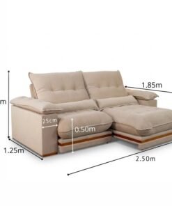 Sofá Retrátil Reclinável Dakar Veludo Bege 818 Larg. 2.50m – Molas Ensacadas