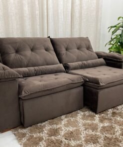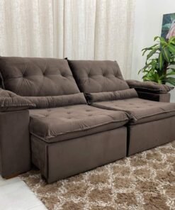 Sofá Retrátil Reclinável Las Vegas 2.30m – Marrom Veludão