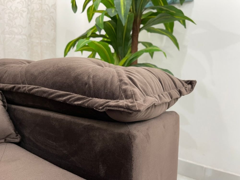 Sofá Retrátil Reclinável Atenas Veludo Marrom 815 Larg. 2.30m – D33 e Molas Ensacadas