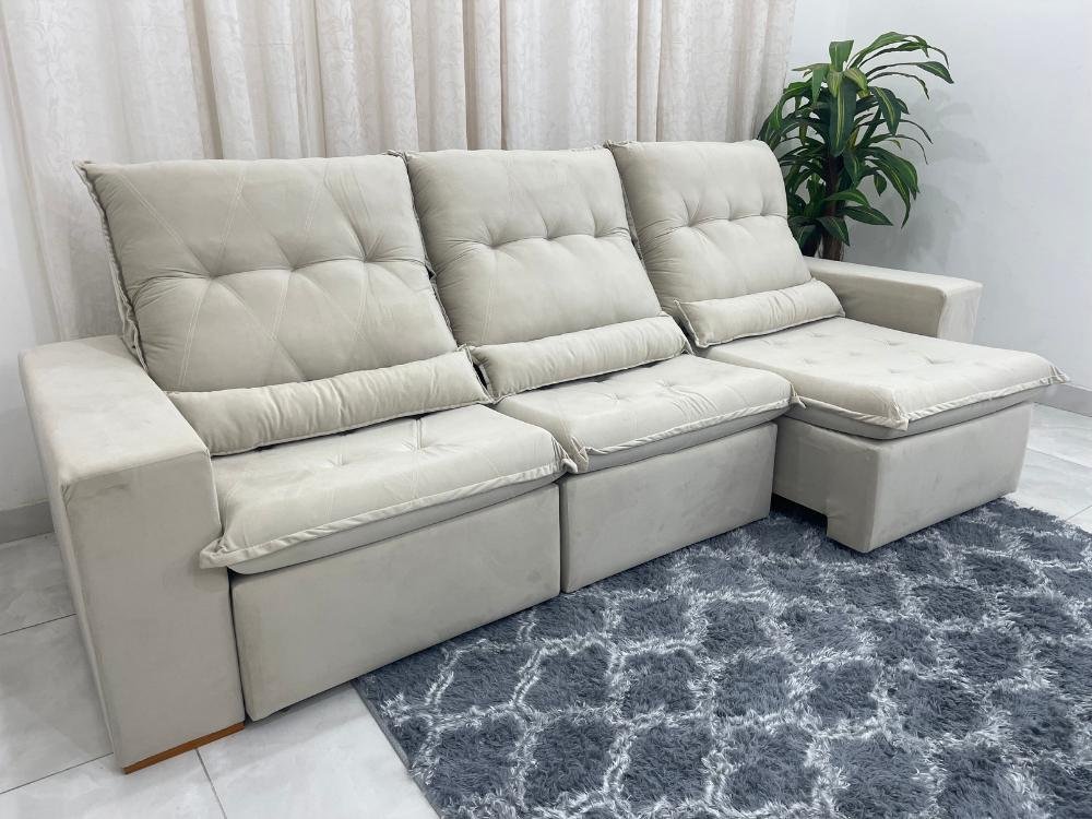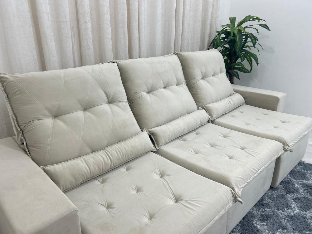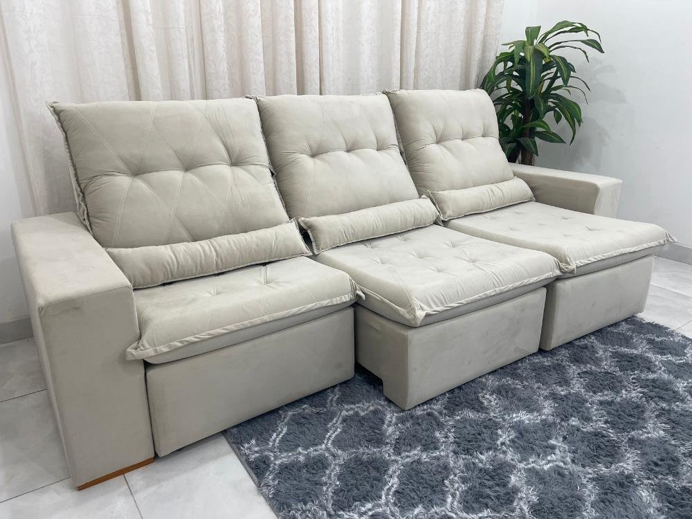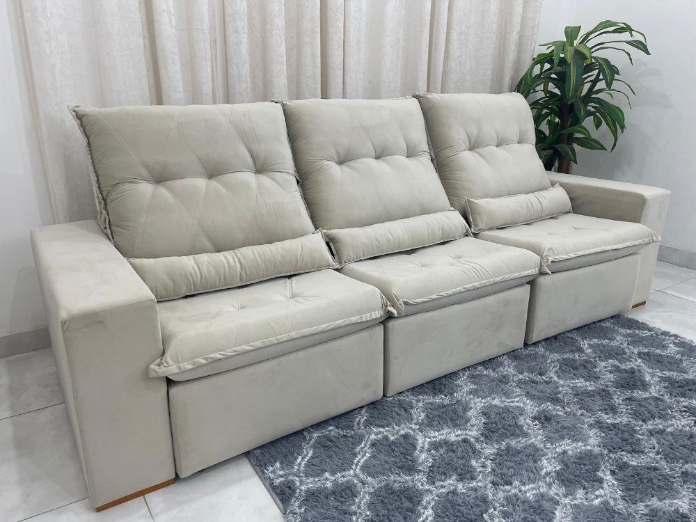 Sofá Retrátil Reclinável Las Vegas 2.70m – Bege Veludão