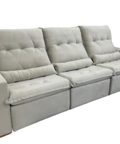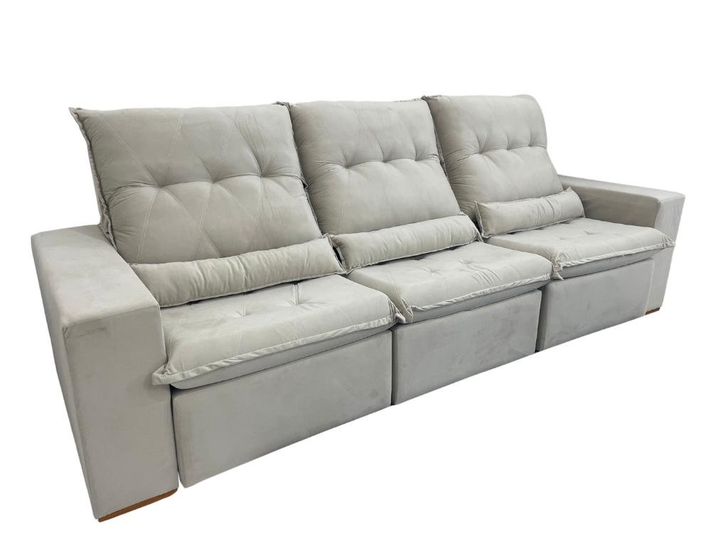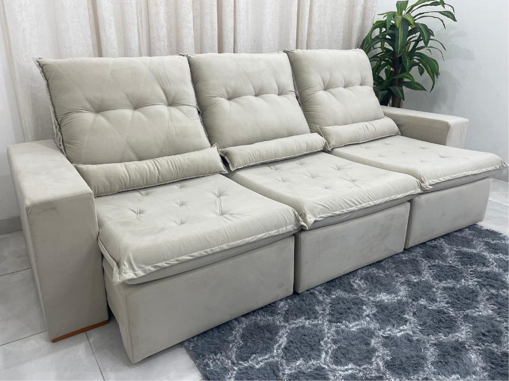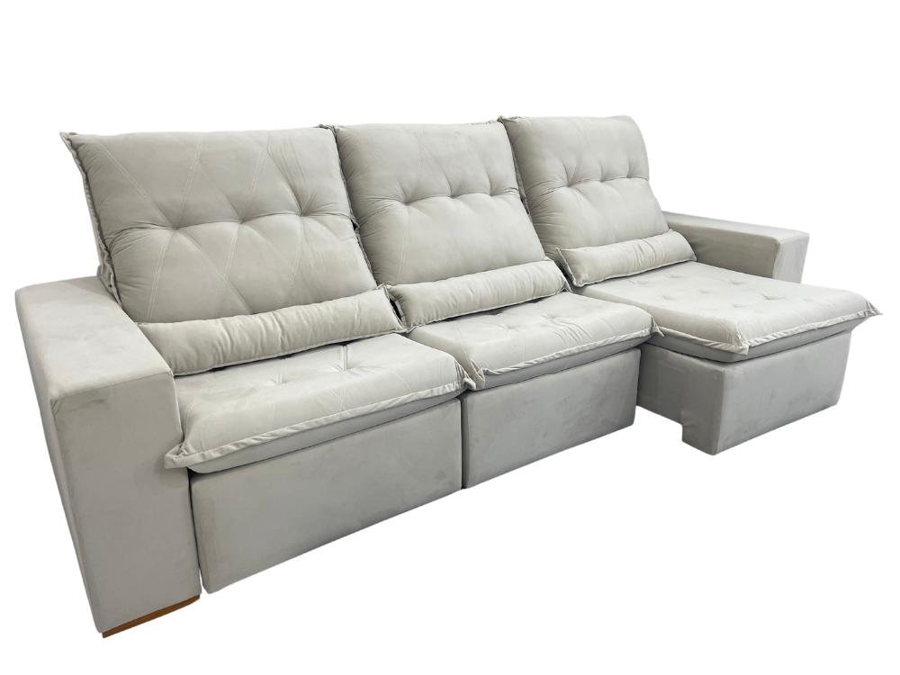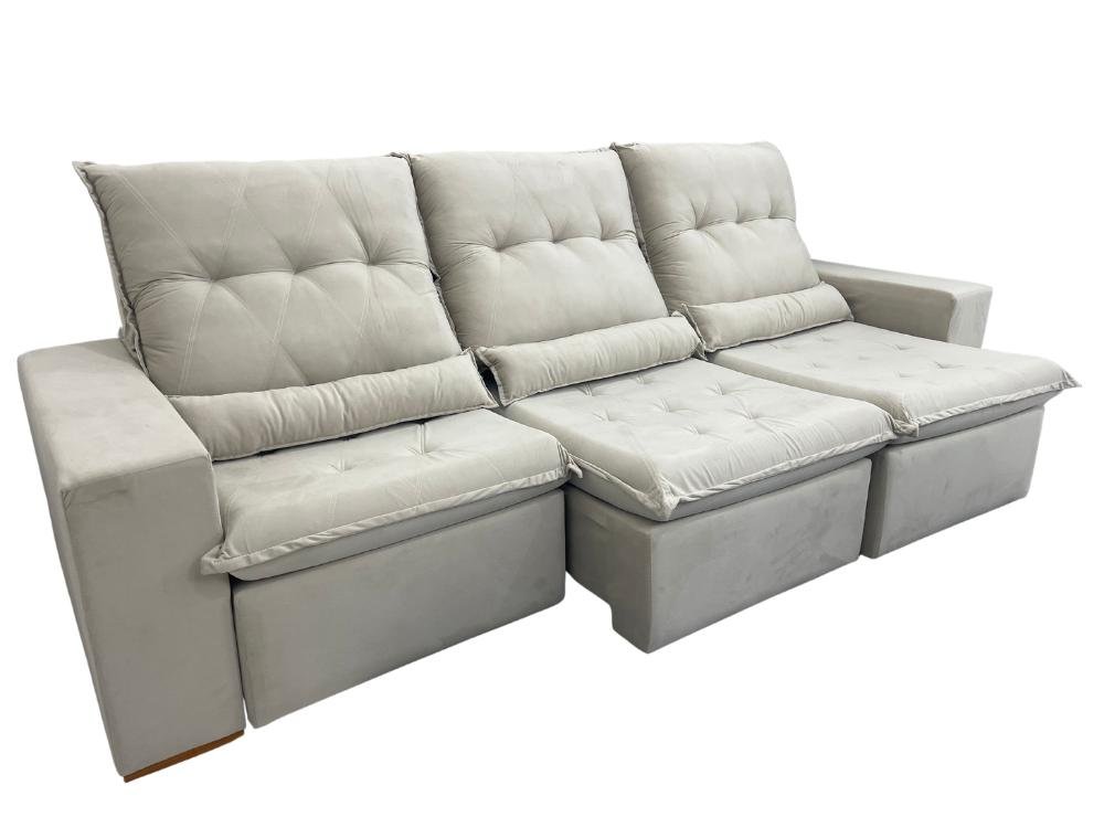 Sofá Retrátil Reclinável Roma Veludo Bege 01 Larg. 2.70m – D28 Soft